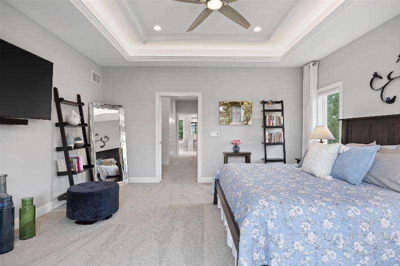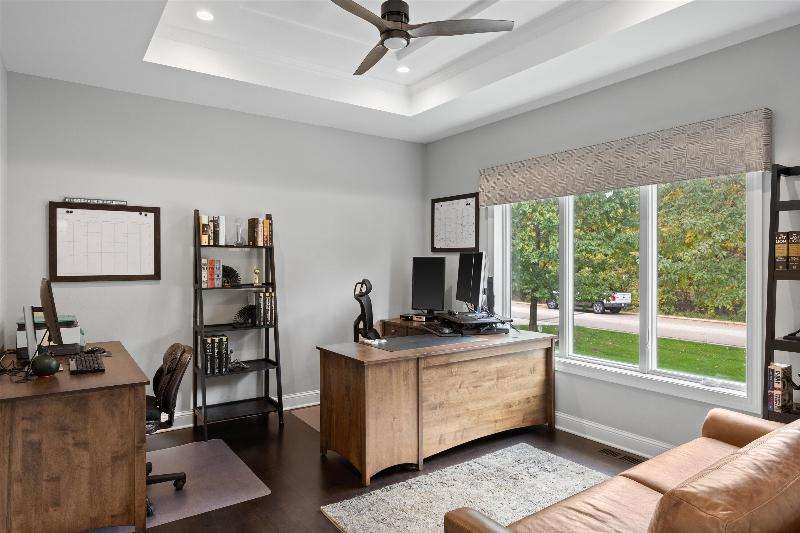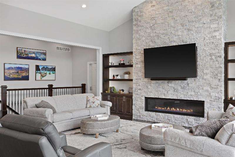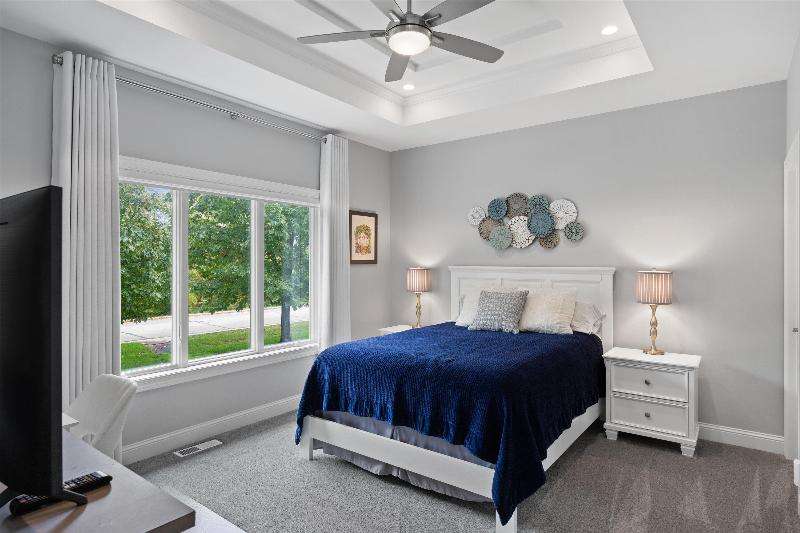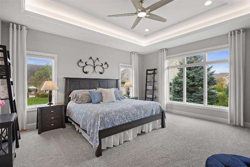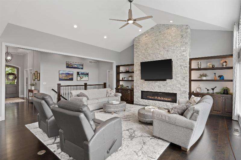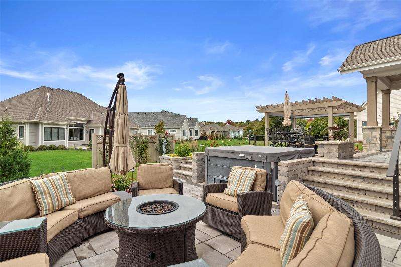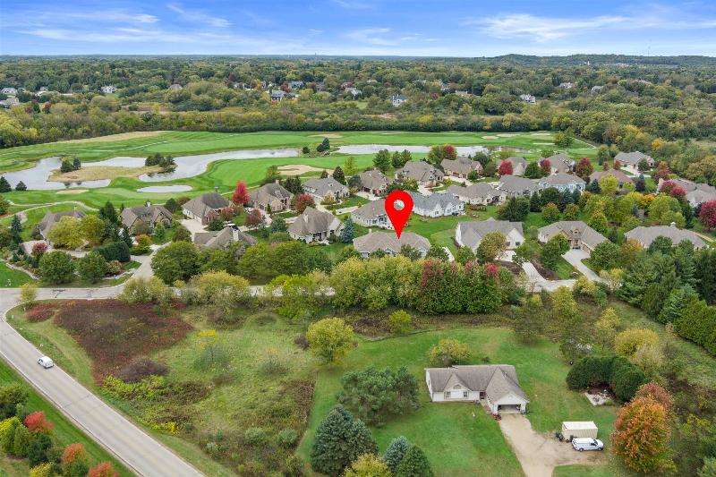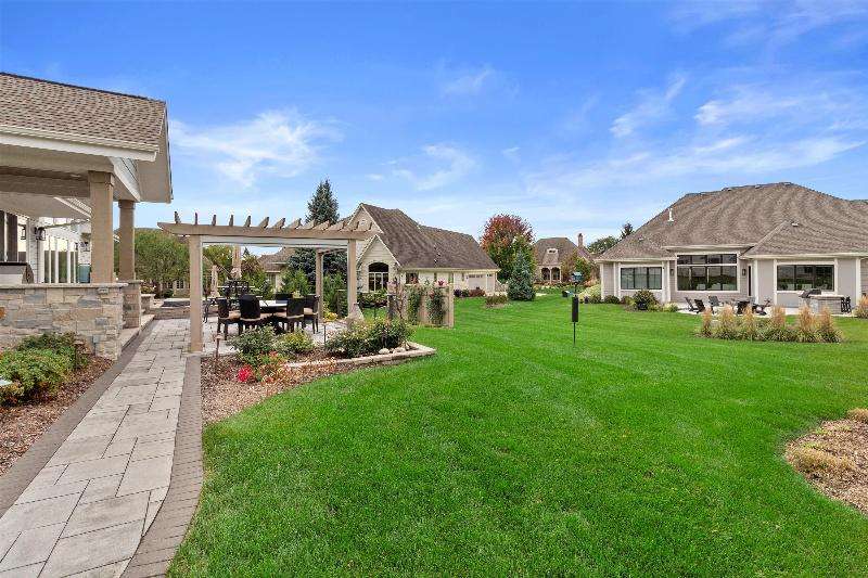 Step into luxury with this custom-built 2022 condo at Regency Fairway Villas, offering over 4,800 sq ft of thoughtfully curated living space. With 4 bedrooms and 3.5 bathrooms this home blends timeless craftsmanship with modern comfort. The open-concept main level features a chef's kitchen with Wolf and Sub-Zero appliances, a spacious dining area, and a great room ideal for entertaining or everyday living. On the main level, enjoy three bedrooms, including a primary suite with an expansive walk-in closet and spa-inspired bath. The finished lower level offers a custom bar, living area, exercise room/optional fourth bedroom. Situated in one of Lake Country's premier golf communities.
