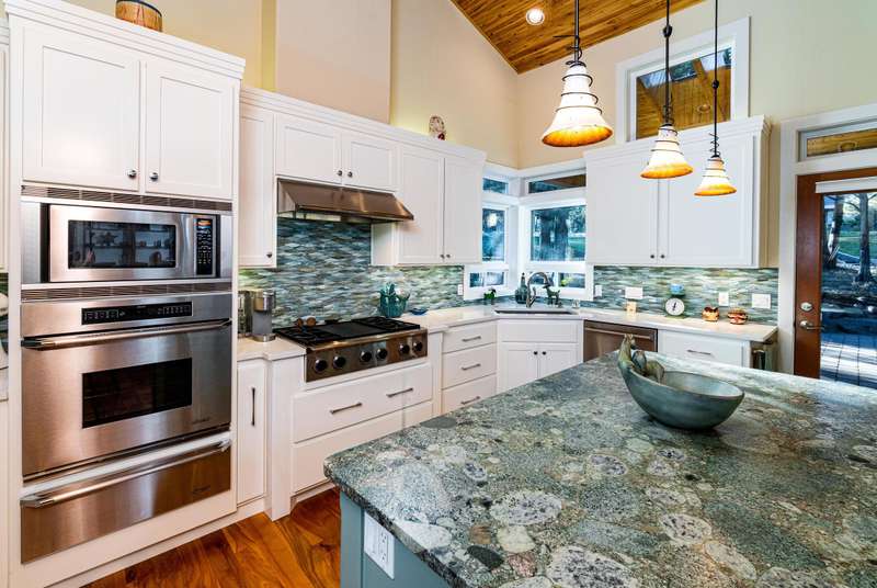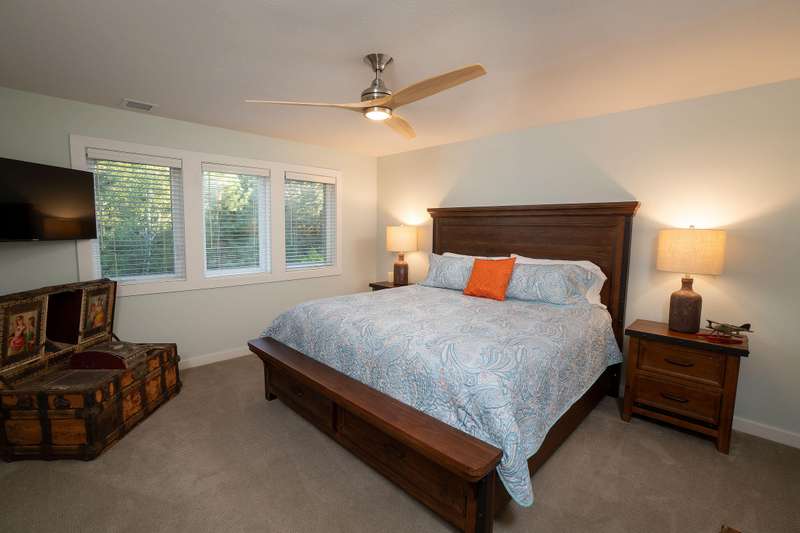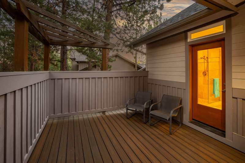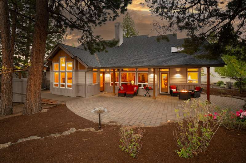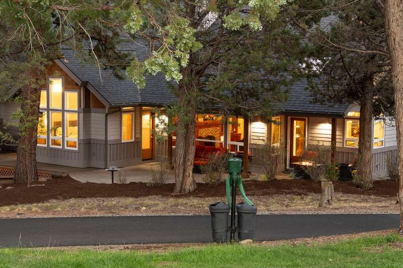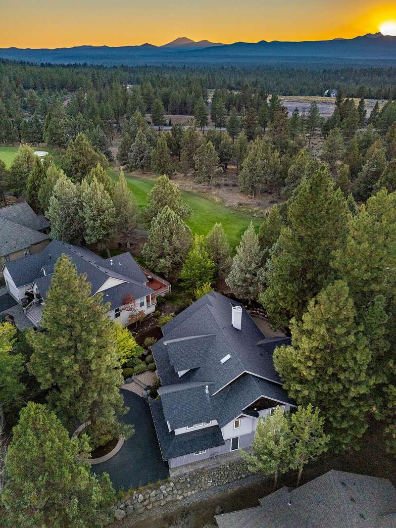 Discover luxury living in Awbrey Glen, one of Bend's most sought-after gated golf communities. On the 6th tee box, this stunning home blends elegance, comfort, and the Central Oregon lifestyle. The great room features beautiful hardwood floors, vaulted wood ceilings, custom built-ins, and large windows filling the space with natural light and golf course views. The modern kitchen offers a 6-burner gas cook-top, large island, and ample storage, perfect for entertaining. The dining area flows seamlessly into the kitchen and great room. The main-level primary suite includes vaulted wood ceilings, dual sinks, a walk-in shower, and spacious closet. Outdoor living shines with a covered wood-ceiling patio. The garage has a bonus area w/ workbench and cabinets providing excellent storage. Embrace luxury home living, outdoor lifestyle, and premier Bend amenities. Listing agent is related to the sellers.