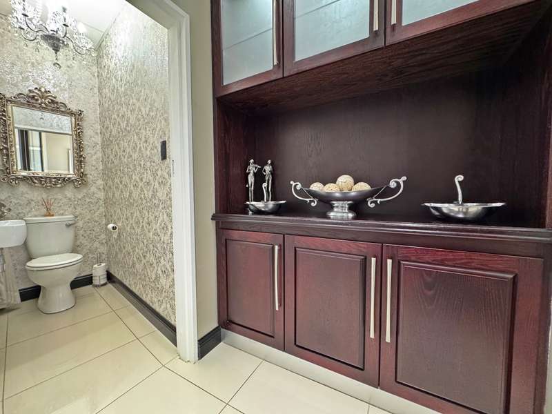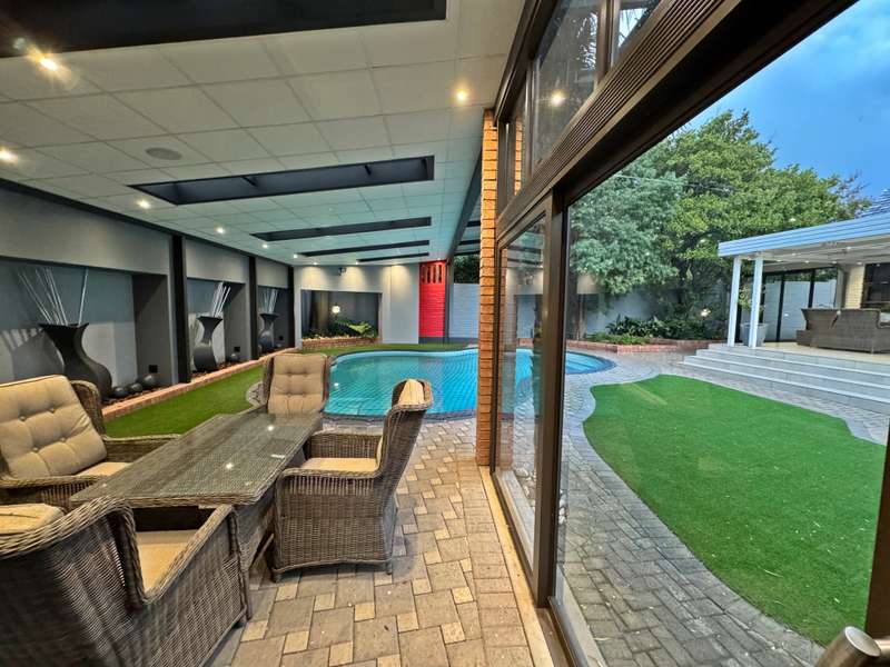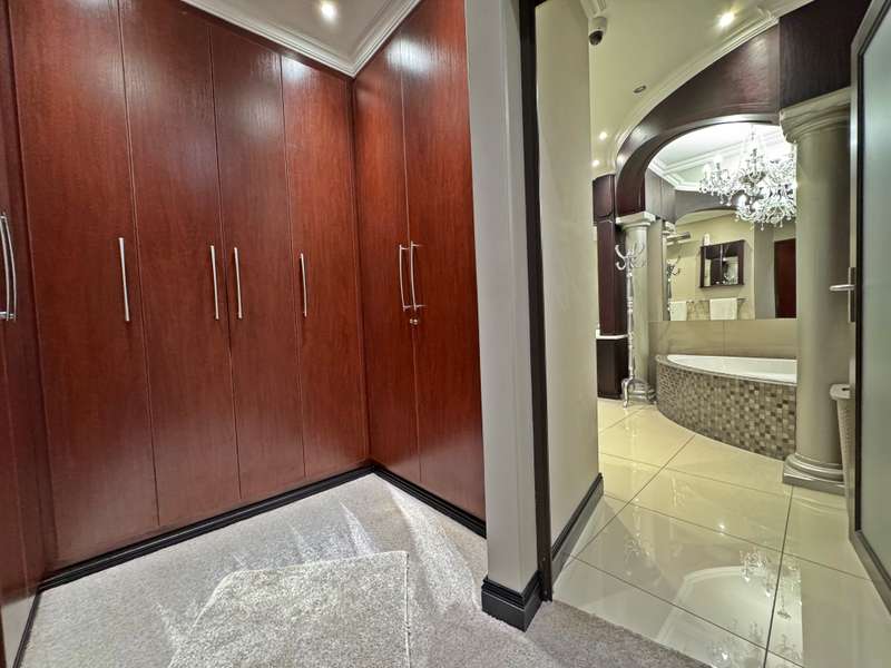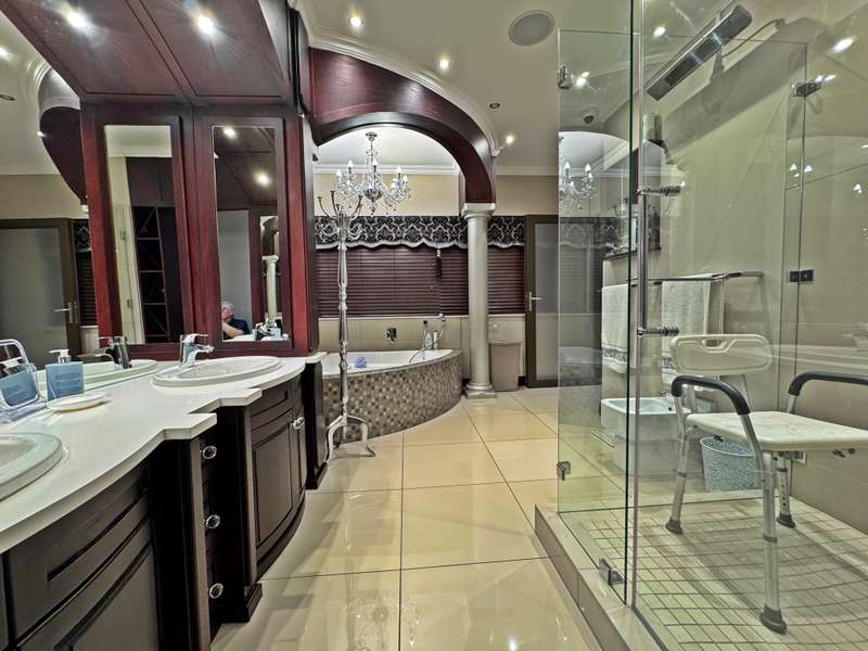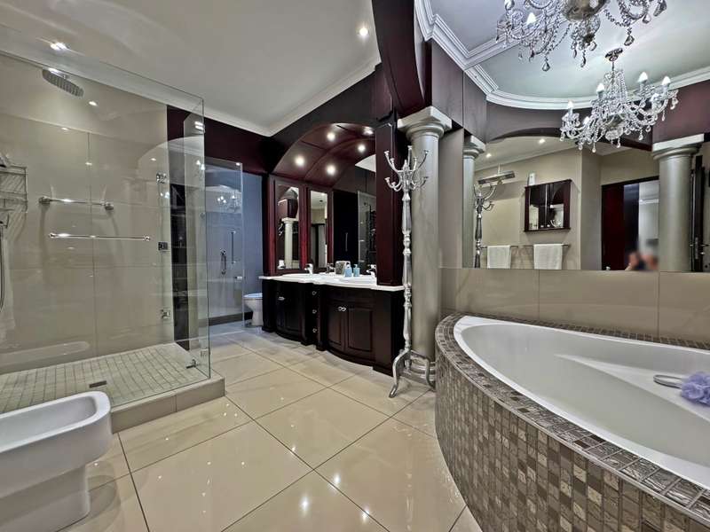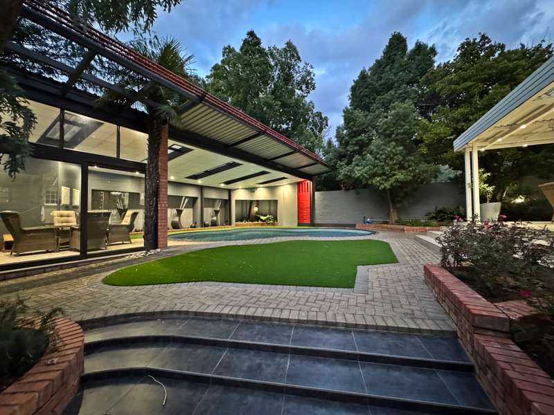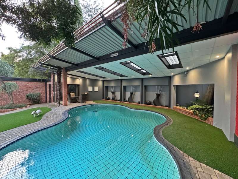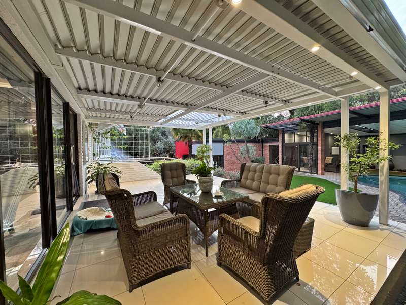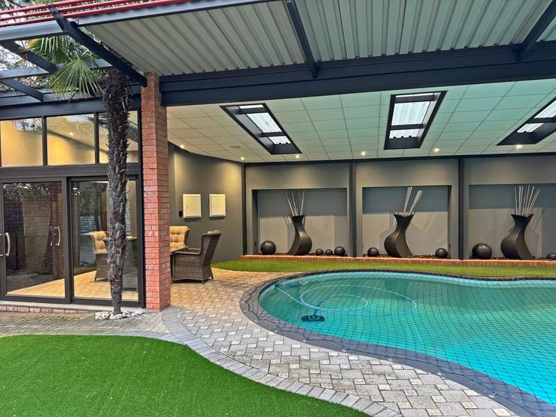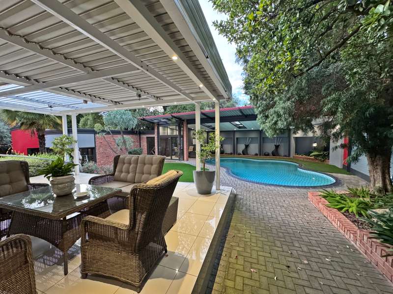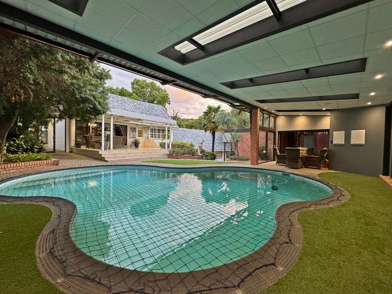 Welcome to this exceptional hidden gem in Waverley – a property like no other, offering unparalleled luxury, convenience, and privacy. Nestled at the end of a quiet cul-de-sac, this home is the perfect sanctuary away from the hustle and bustle, where you can enjoy peace and tranquility. Ideal for car enthusiasts, this property features a state-of-the-art showroom that can accommodate up to 24 cars, complete with stunning lighting to showcase your prized collection. The space also includes a stylish office and boardroom with a kitchen, offering the perfect view of your vehicles and creating an atmosphere of luxury and sophistication. For those with a passion for collecting toys, a dedicated hobby room offers the ideal storage solution for your "little cars." Step into the heart of this magnificent home, where family and friends can gather in comfort and style. The spacious open-plan living areas include three generous reception rooms, perfect for entertaining or simply relaxing with loved ones. A well-appointed open-plan kitchen serves as the hub of the home, while a second kitchen on the ground floor provides added convenience and can easily be utilized as a flat-let. The outdoor space is just as impressive, with a beautiful swimming pool with a waterfall and a covered pool deck, making it the ideal place to spend those warm summer days. The main bedroom is a luxurious retreat, featuring a full en-suite bathroom and direct access to the undercover louver patio overlooking the pool area, providing a seamless connection between indoor and outdoor living. This home boasts four spacious bedrooms, with three and a half bathrooms, two of which are full en-suites. Underfloor heating throughout the house ensures comfort on chilly winter days, adding to the home's luxurious feel. With an advanced solar system, including 2x 25kW Tri-Power SMA PV Inverters, 3x 8.0H13 Sunny Island SMA Battery Inverters, 2x 20/16 Freedom Won Batteries, and 128 x 430 PV Modules, making the worth of the system alone R850,000 (50% of the Solar not yet connected to property), this home is designed for sustainability and energy efficiency. The property also offers state-of-the-art security with CCTV cameras, providing peace of mind. There is a borehole but not working as yet. This is truly a one-of-a-kind home, offering luxury, practicality, and a lifestyle that is hard to match. Don’t miss out on this extraordinary opportunity—contact Johann du Plessis today to arrange a private viewing and see for yourself why this is the perfect home for you.
