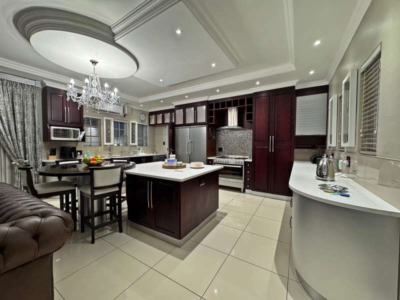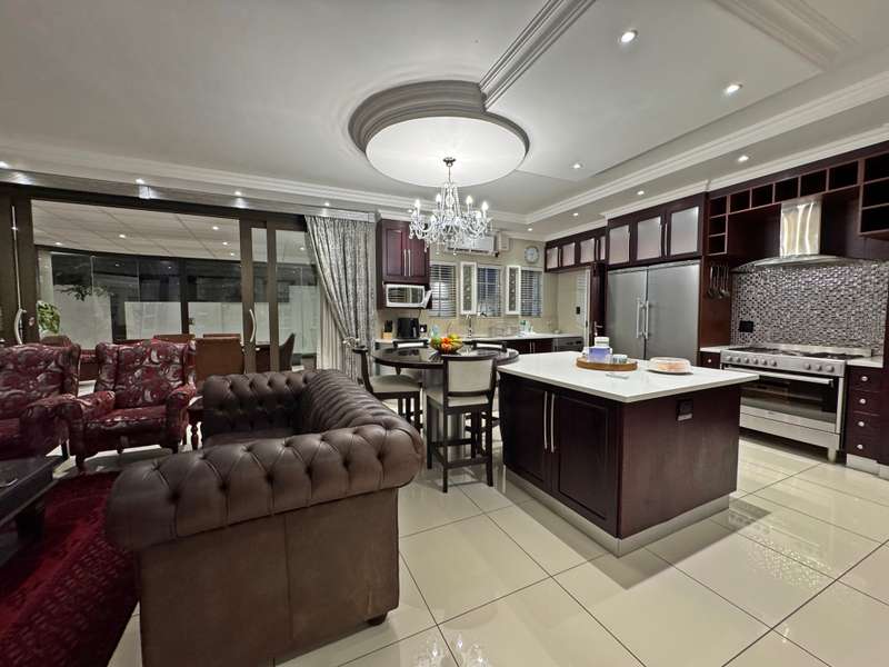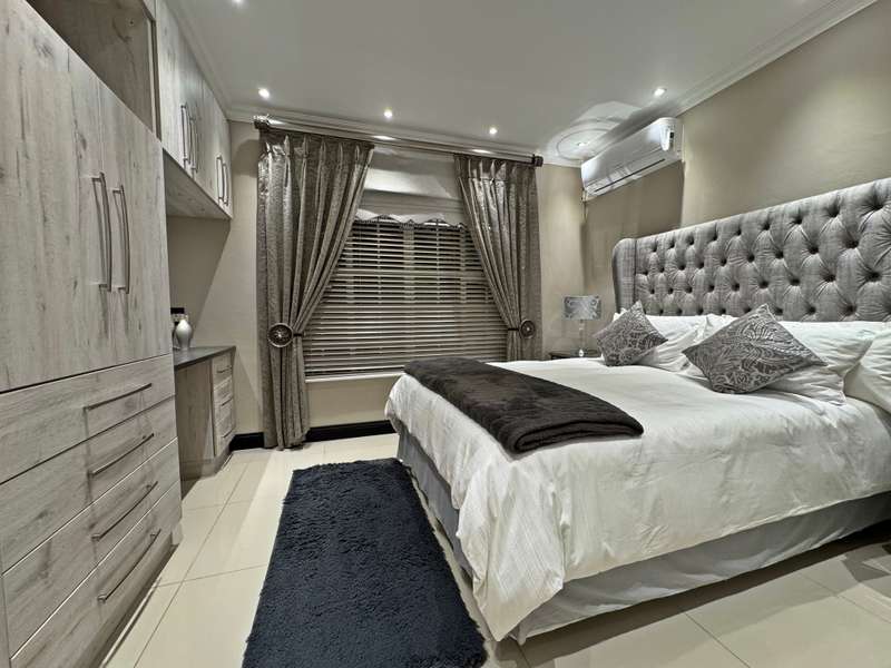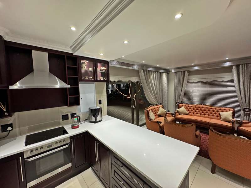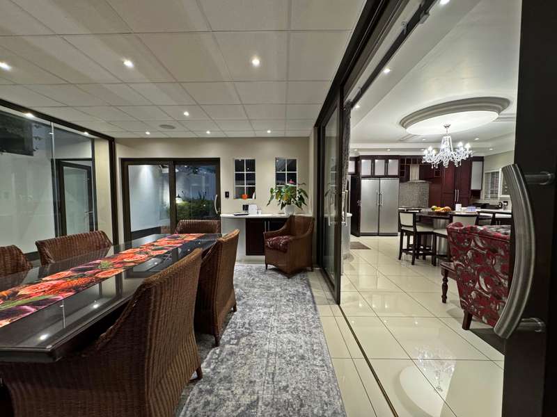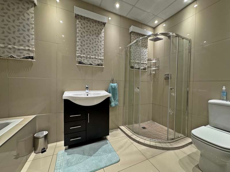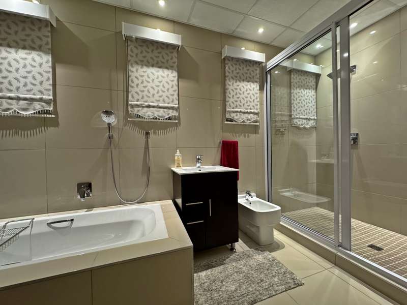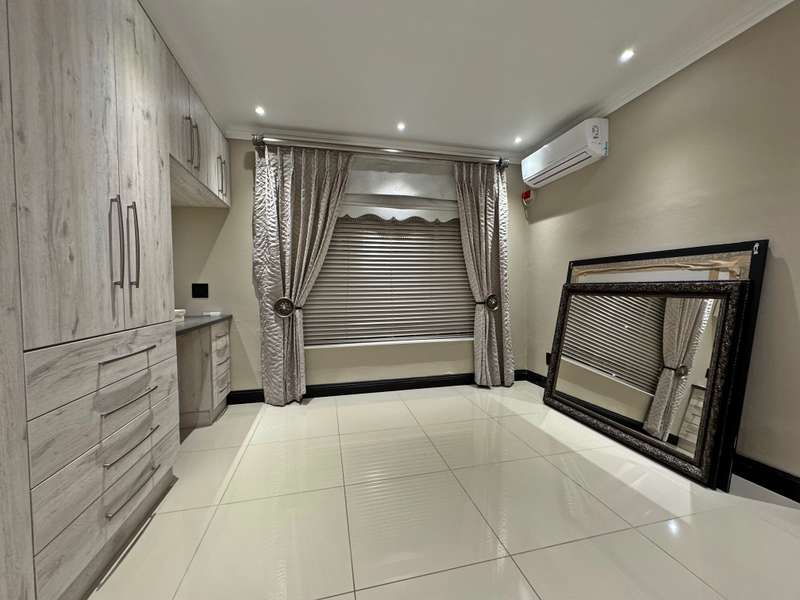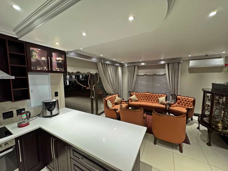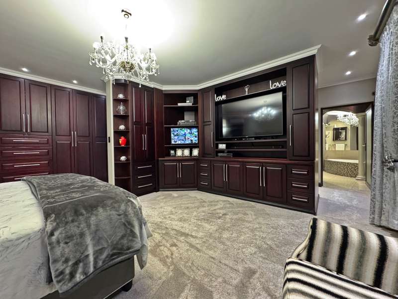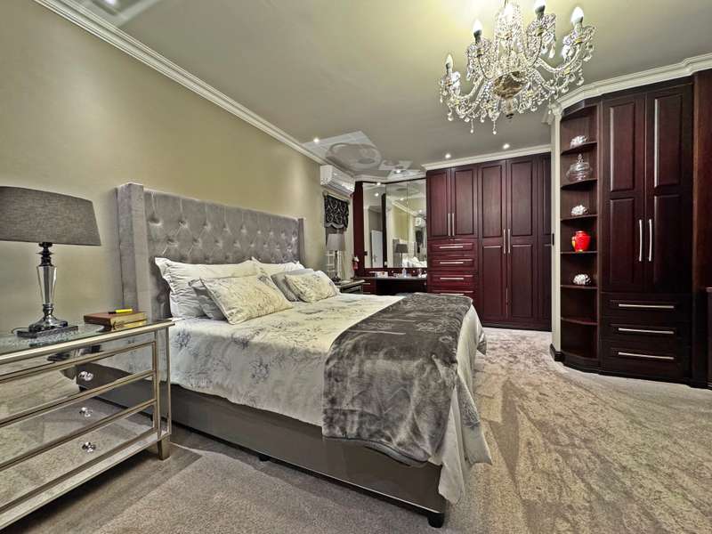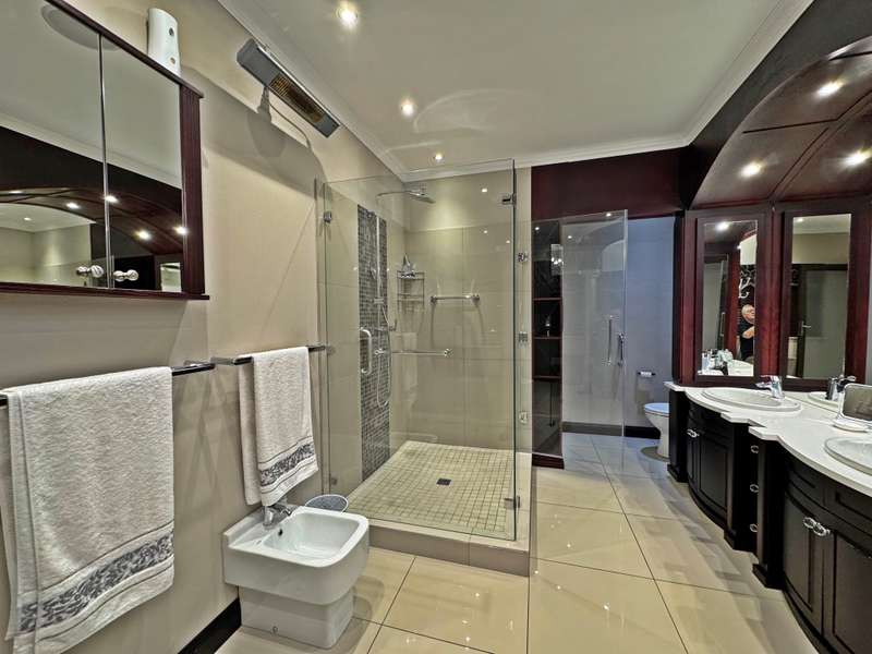 Welcome to this exceptional hidden gem in Waverley – a property like no other, offering unparalleled luxury, convenience, and privacy. Nestled at the end of a quiet cul-de-sac, this home is the perfect sanctuary away from the hustle and bustle, where you can enjoy peace and tranquility. Ideal for car enthusiasts, this property features a state-of-the-art showroom that can accommodate up to 24 cars, complete with stunning lighting to showcase your prized collection. The space also includes a stylish office and boardroom with a kitchen, offering the perfect view of your vehicles and creating an atmosphere of luxury and sophistication. For those with a passion for collecting toys, a dedicated hobby room offers the ideal storage solution for your "little cars." Step into the heart of this magnificent home, where family and friends can gather in comfort and style. The spacious open-plan living areas include three generous reception rooms, perfect for entertaining or simply relaxing with loved ones. A well-appointed open-plan kitchen serves as the hub of the home, while a second kitchen on the ground floor provides added convenience and can easily be utilized as a flat-let. The outdoor space is just as impressive, with a beautiful swimming pool with a waterfall and a covered pool deck, making it the ideal place to spend those warm summer days. The main bedroom is a luxurious retreat, featuring a full en-suite bathroom and direct access to the undercover louver patio overlooking the pool area, providing a seamless connection between indoor and outdoor living. This home boasts four spacious bedrooms, with three and a half bathrooms, two of which are full en-suites. Underfloor heating throughout the house ensures comfort on chilly winter days, adding to the home's luxurious feel. With an advanced solar system, including 2x 25kW Tri-Power SMA PV Inverters, 3x 8.0H13 Sunny Island SMA Battery Inverters, 2x 20/16 Freedom Won Batteries, and 128 x 430 PV Modules, making the worth of the system alone R850,000 (50% of the Solar not yet connected to property), this home is designed for sustainability and energy efficiency. The property also offers state-of-the-art security with CCTV cameras, providing peace of mind. There is a borehole but not working as yet. This is truly a one-of-a-kind home, offering luxury, practicality, and a lifestyle that is hard to match. Don’t miss out on this extraordinary opportunity—contact Johann du Plessis today to arrange a private viewing and see for yourself why this is the perfect home for you.