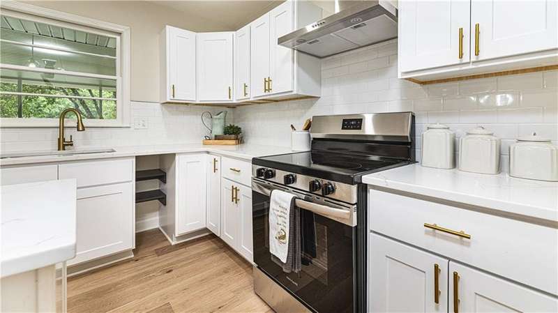 Newly remodeled- New white oak hardwood floors, new cabinets , paint, carpet, counter tops, appliances, light fixtures and so much more! All bedrooms are on the main level. Partially finished basement with .5 Bathroom. Oversized 2 stall garage. Agent/Owner