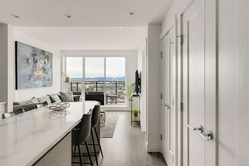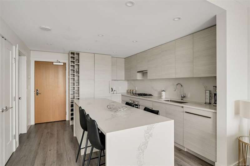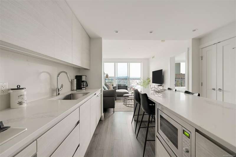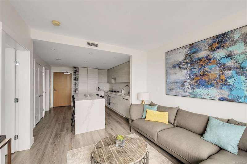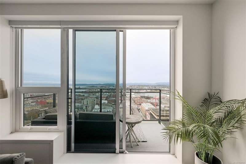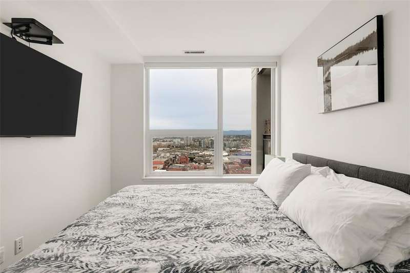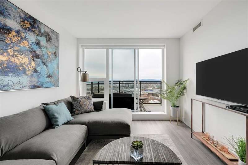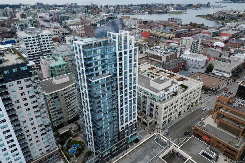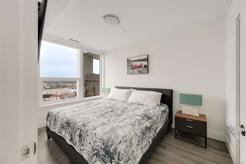 Welcome to Hudson Place One - Victoria’s premier address for sophisticated urban living. This 1 bed, 1 bath home on the 20th floor offers sweeping southwest-facing views of the Inner Harbour and beyond, with mesmerizing sunsets that will take your breath away. Inside, you’ll find a modern, open-concept layout with high-end finishes and thoughtful design throughout. Step outside your unit door to enjoy an unmatched array of building amenities, including a fully equipped gym, yoga studio, sauna, games room, social lounge, BBQ area, communal kitchen, children's play area, and even a pet wash and relief zone. Perfectly positioned next to the iconic Hudson building, you're surrounded by some of the city’s best restaurants, shopping, and entertainment - with a walk score of 99 to prove it. Experience elevated downtown living in one of Victoria’s most amenity-rich and stylish residences. Complete with parking and storage. Hudson Place One is more than a home - it’s a lifestyle!