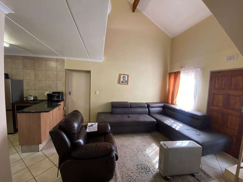 EXCLUSIVE MANDATE ! This move-in ready townhouse offers the perfect blend of comfort, practicality, and low-maintenance living in a sought-after security estate. Two bedrooms downstairs share a bathroom, ideal for family living or guests. Upstairs, the generous loft area has been transformed into a private third bedroom with its own en-suite bathroom – perfect as a main suite, guest room, or teen retreat. The open-plan lounge and modern kitchen are both stylish and functional, featuring granite countertops, neat cabinetry, an electric hob, and undercounter oven – perfect for everyday convenience. A quaint private garden offers a peaceful outdoor space. Includes 1 garage and 1 carport for your parking needs. Energy-saving solar geyser included. Face brick exterior ensures low maintenance and long-lasting appeal. Neat, secure, and move-in ready – just bring your furniture! Ideal for families, professionals, or those seeking a lock-up-and-go lifestyle. Contact us today to arrange your viewing!