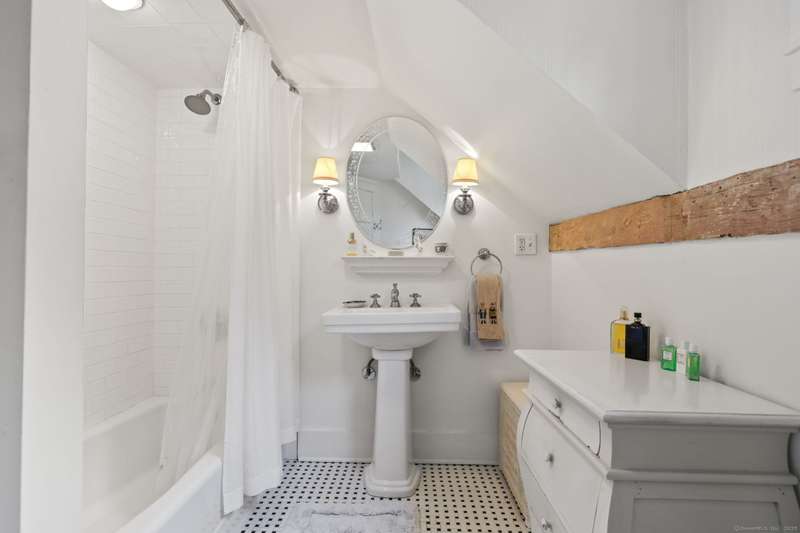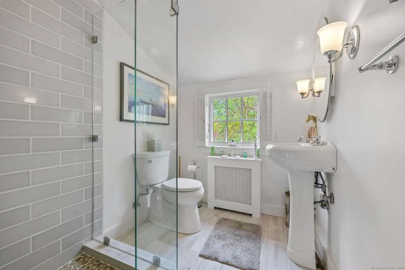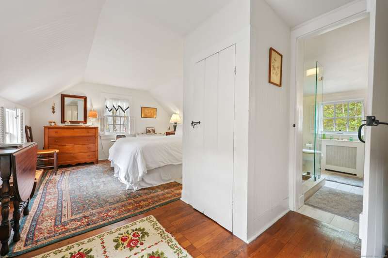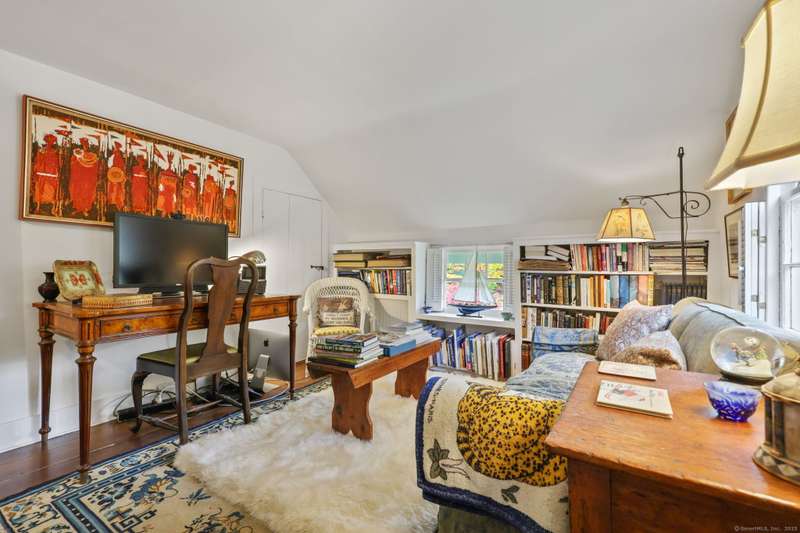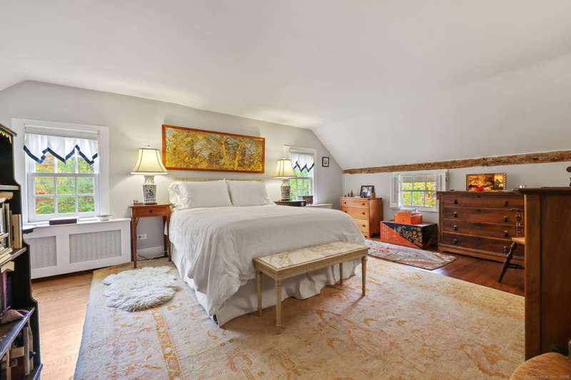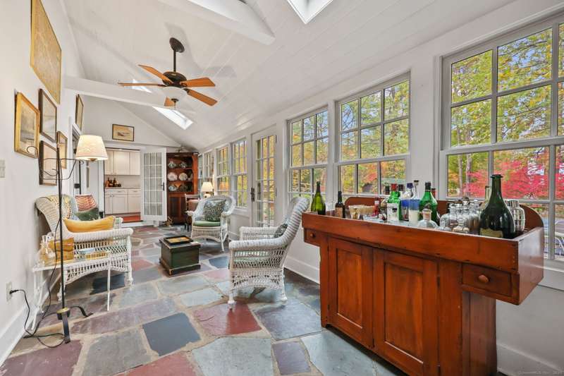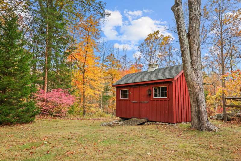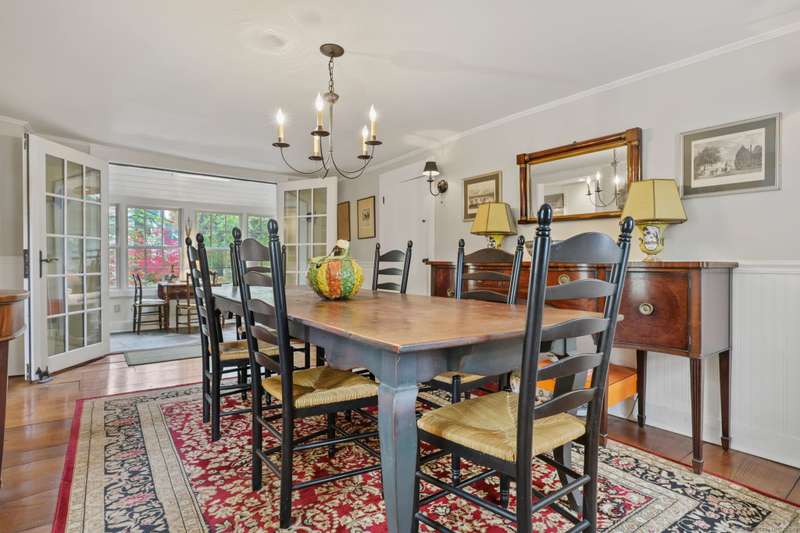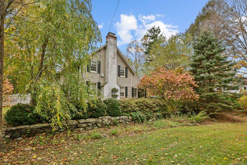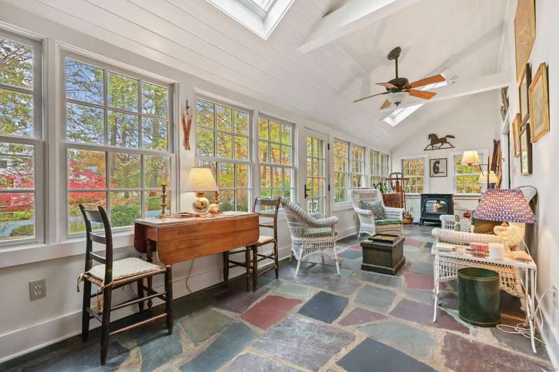 Exceptional three-bedroom antique Colonial exudes tremendous curb appeal on 1.51 pastoral acres with heated pool, inviting terrace, fenced-in level yard, meadow teeming with native plants surrounding pond in a peaceful country setting across from a horse farm. Enduring charm defines this well maintained, thoughtfully updated 1800 home rich in classic architectural details with wide plank wood floors, French doors and built-in cabinetry. Marble-clad kitchen offers a basketweave tiled backsplash, a nod to the home's history as a basket shop. Living room with fireplace, dining room and sunroom with pellet stove, skylights and outdoor access are great for relaxed living and entertaining. Primary suite with adjacent sitting room, office, nursery or additional bedroom; third bedroom and full bath complete the second floor.