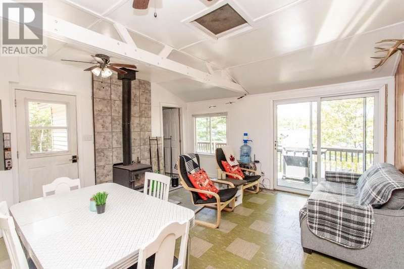 NOT A MOBILE HOME. Super private year-round retreat just minutes from Espanola! This charming two-bedroom cottage on the sought-after Apsey Lake offers a rare opportunity to own a piece of paradise. Attached to crown land, great for fishing and nature lovers. Set on 1.27 acres, the property features a three-tiered layout ideal for friends and family with trailers. The cottage itself is nestled on a flat, private section by the water’s edge, boasting two spacious bedrooms, an open kitchen/living area, and a full 4-piece bathroom. Additional highlights include a separate sauna building with an outdoor shower, new docks, outdoor storage, and ample parking. This is a true turnkey property—don’t miss out. Schedule your private viewing today! (id:7434)