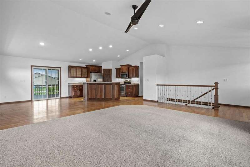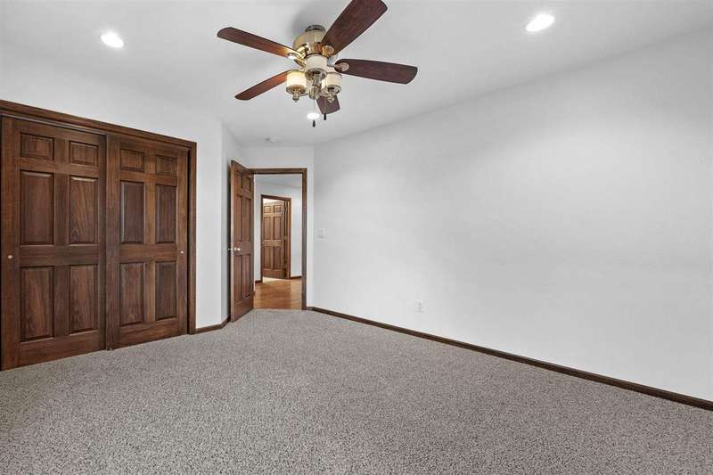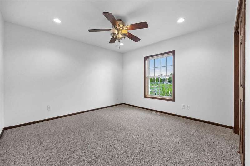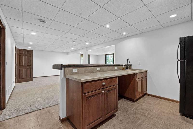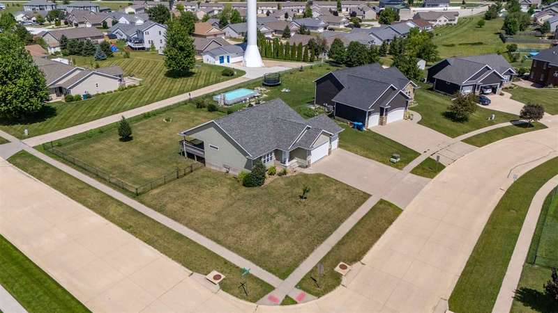 Don't miss out on this 4-bedroom, 3-bathroom home perfectly situated on a spacious corner fenced lot in the heart of Fairfax. This well-maintained home offers an inviting open floor plan with vaulted ceilings and plenty of natural light. The primary suite features an en suite bath with dual vanities and private access to the covered porch, the ideal spot to unwind and enjoy the outdoors. The large finished basement includes a generous family room with a wet bar and daylight windows, perfect for entertaining guests. You’ll love the attached heated 3-car garage for year-round comfort. Located in the sought-after College Community School District, with neighborhood parks and trails just steps away — this home combines comfort, style, and convenience.