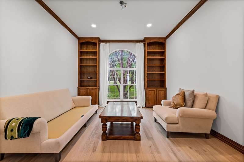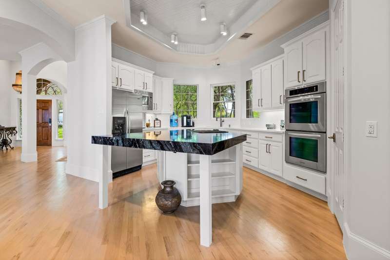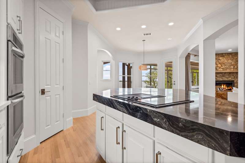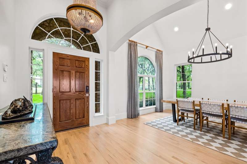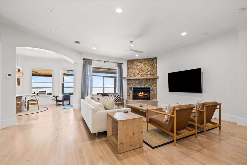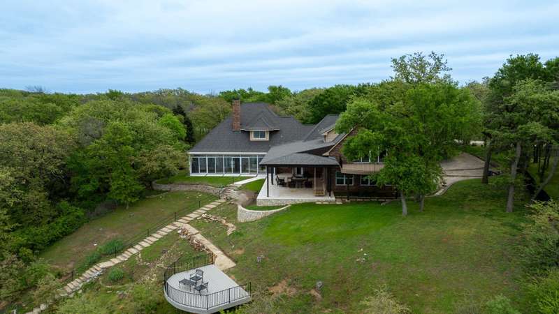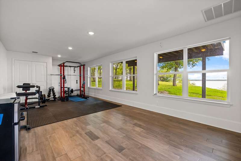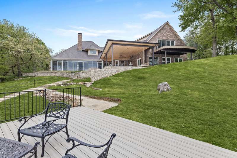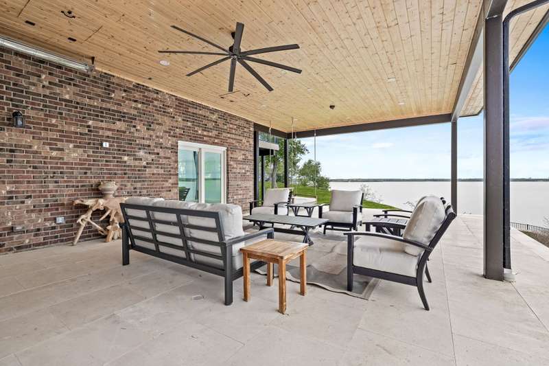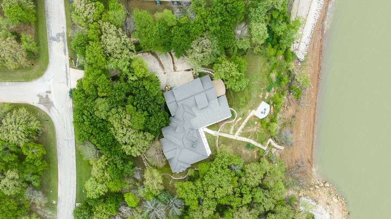 Lakefront stunner full of natural lighting, luxury details, and incredible views! Stylish dining room offers stately chandelier, high ceilings, and large windows to create airy and bright space for special occasions. Family room looks out to sparkling Lake Lewisville and offers ample room for comfortable family time, accented by wood-burning fireplace. Arched walkways lead to a gourmet kitchen, where your inner chef can enjoy the large granite-topped island with built-in JennAir cooktop and luxury stainless-steel appliances including double ovens, warming drawer, dishwasher, and microwave. Recessed ceiling adds a bit of flair to this open space, ideal for entertaining or cooking projects. Sunny breakfast nook overlooks lake and features stylish chandelier to create a cozy gathering spot. Elegant study offers floor-to-ceiling built-ins and space to spread out & create a comfortable home office. Primary bedroom is a true waterfront haven, with walls of windows overlooking lake and space for relaxing sitting area. Spa-like primary bath offers gorgeous soaking tub and extra features like dual vanities, large standing shower, and 2 walk-in closets. Secondary bedrooms offer walk-in closets and baths, perfect for families or guests. Enormous game room is made for hosting, with wall of built-ins for storage and generous room for pool table, crafting, and big screen for movie nights. First floor exercise room boasts gorgeous lakeside oasis views and ample room for exercise machines, weights, and yoga. Massive enclosed sunroom gives incredible outdoor views in comfortable setting, with plenty of space for seating and entertaining. Expansive covered & newly constructed patio offers amazing views. Additional features include newly constructed floating deck close to water and upstairs deck, multiple staircases, stone steps to lake, and boat.