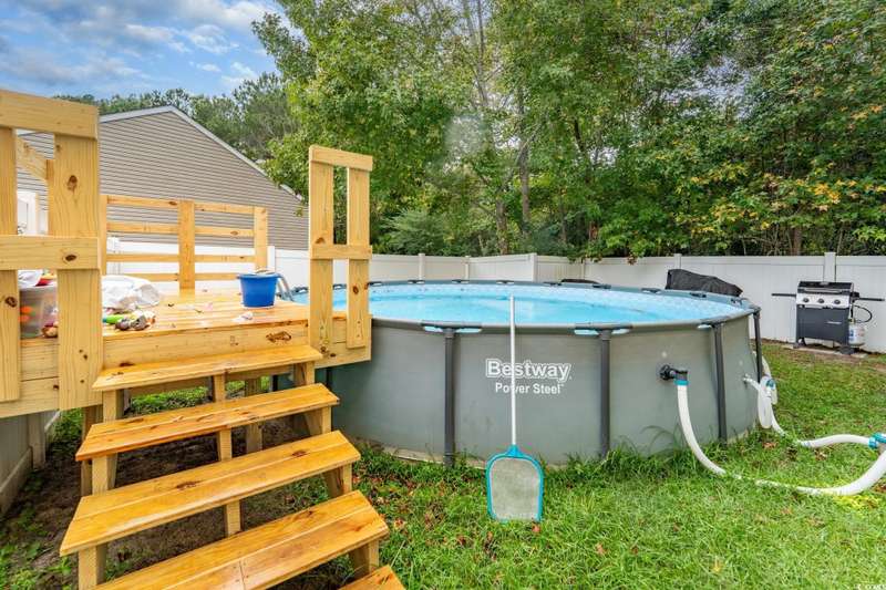 Come see this stunning, well groomed, unique, and once in a lifetime 3 bedroom, 2-1/2 bath home nestled on a beautiful lot at the East end of Pine Needle Estates. The kitchen features a new under cabinet lighting and stainless steel and black lacquer appliances, pantry, and a second pantry in hallway. Two car garage boasts hand made, heavy wooden shelving and wooden work bench. ALL bedrooms include walk-in closets and the Primary bedroom's walk-in is oversized! All rooms are newly painted. Owners built a wood deck around the back patio slab, and installed an 18'x4' deep, above ground pool less than 1 year ago. The yard is fenced, with a flower and vegetable garden, and the home's roof was intalled on 6/9/2023. Pine Needle Estates is a quiet neighborhood. All utilities are underground, and the streets were newly re-paved the winter before last.