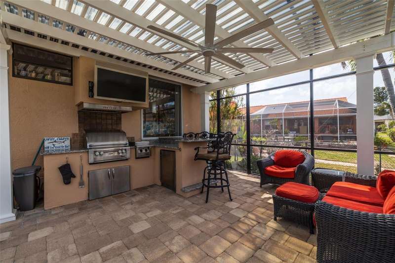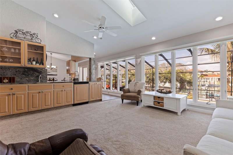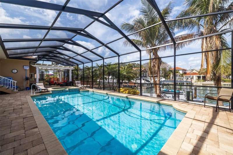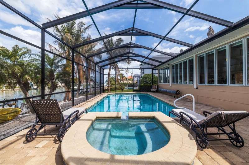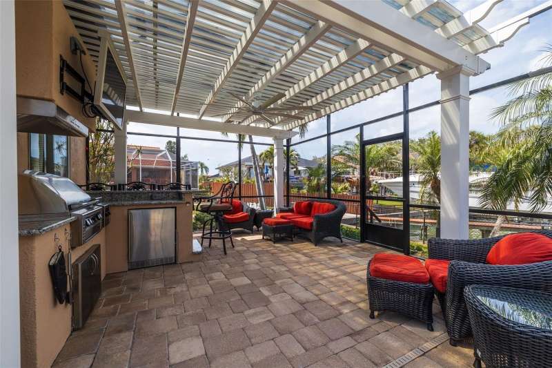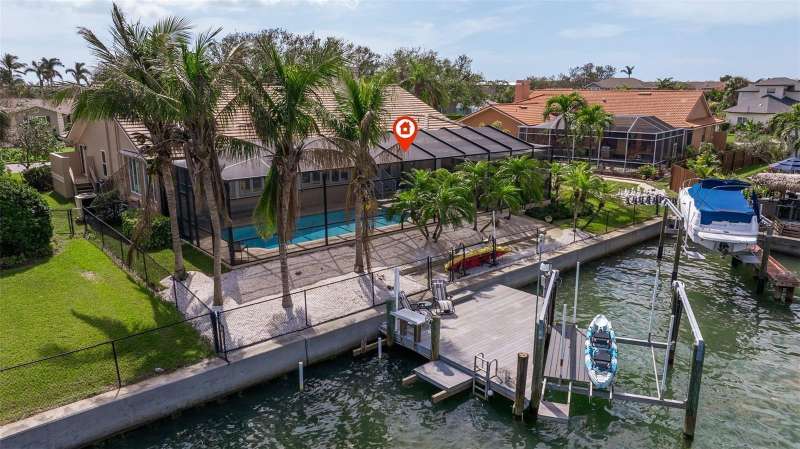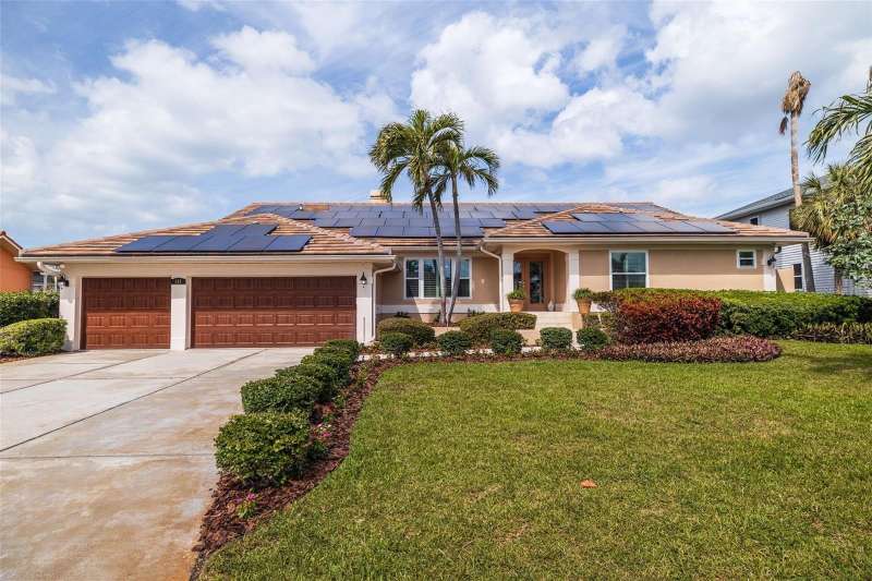 PRICE CHANGE ON THIS BEAUTIFUL WATERFRONT HOME!! Welcome to 137 11th St. E., a beautifully updated waterfront home in Tierra Verde’s coveted Sands Point neighborhood. Embrace the Florida lifestyle with stunning water views with dolphins and manatees visiting your backyard. A paved entryway leads to an inviting tropical double-door entrance. Step inside to a spacious living and dining area with high ceilings and an open layout bathed in natural light. The dining area flows seamlessly through the living room into the family room, where large windows immediately draw your eye to the water. Just beyond, the family room extends the living space, creating an effortless connection between indoor and outdoor waterfront living. Whether you’re washing dishes in the kitchen or relaxing by the pool, the breathtaking water views will never be far, with frequent visits from the local wildlife. Designed for both style and function, the expansive kitchen is perfect for entertaining, featuring an oversized island, gas cooktop, double ovens, and a deep sink with picturesque water views. A breakfast bar with additional cabinetry transitions into the family room, serving as a convenient bar area. The casual dining space offers plenty of seating, while an updated contemporary gas fireplace adds warmth and ambiance. The primary suite is privately situated away from the guest bedrooms, offering a peaceful retreat with high ceilings, abundant natural light, and a full wall of windows showcasing breathtaking water views. A bonus space, currently used as a fitness area, allows you to enjoy the scenery while you work out. The luxurious en-suite bath includes dual granite vanities, a whirlpool tub, a large walk-in shower, and a spacious walk-in closet. A private sliding door provides direct access to the pool area. Three additional bedrooms complete the home: one near the entrance, perfect for a home office, and two more behind the kitchen, each with updated full baths and walk-in closets. A nearby laundry room offers extra storage. Step outside to the screened-in pool area, featuring a spa, pool waterfall, and fully equipped outdoor kitchen. The built-in grill, side burner, refrigerator, and full bar make it ideal for entertaining, whether swimming or lounging on the paved deck. Beyond the screen, a crushed shell patio and lush landscaping lead to the updated composite boat dock, equipped with a boat lift, seating area, and space for kayaks or jet skis. Enjoy direct access to Tampa Bay and the Gulf of Mexico in just minutes. Mature landscaping enhances the home’s curb appeal, creating a lush, inviting atmosphere. A three-car garage with high ceilings and extra storage is perfect for all your island lifestyle toys. This home blends elegance and efficiency, featuring a light exterior, a newly installed warm brown garage door, and roof tiles that complement its aesthetic. Fully paid-for solar panels provide energy savings, while thoughtful updates- including a newer roof, updated windows, a modern gas fireplace, brand-new kitchen countertops, beautifully renovated bathrooms, and updated flooring ensure a fresh, contemporary feel. Located in an active community just 10 minutes from downtown St. Pete and 30 minutes from Tampa International, this home is near Fort De Soto Parks pristine beaches and dog park. Enjoy nearby biking and running trails, as well as pickleball and tennis courts, a playground, and more.
