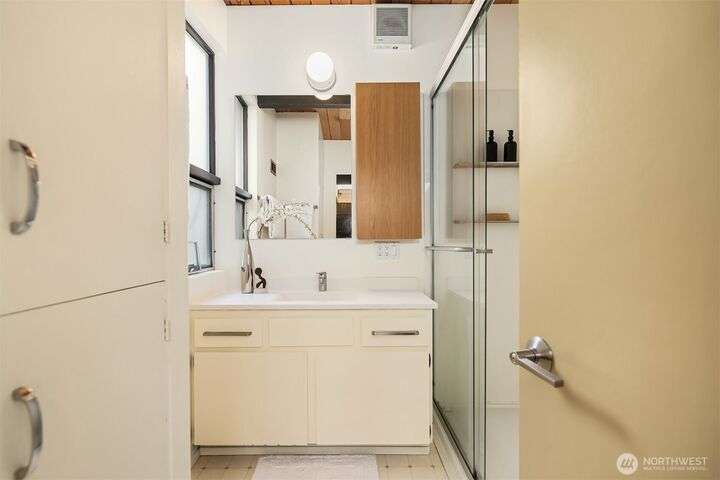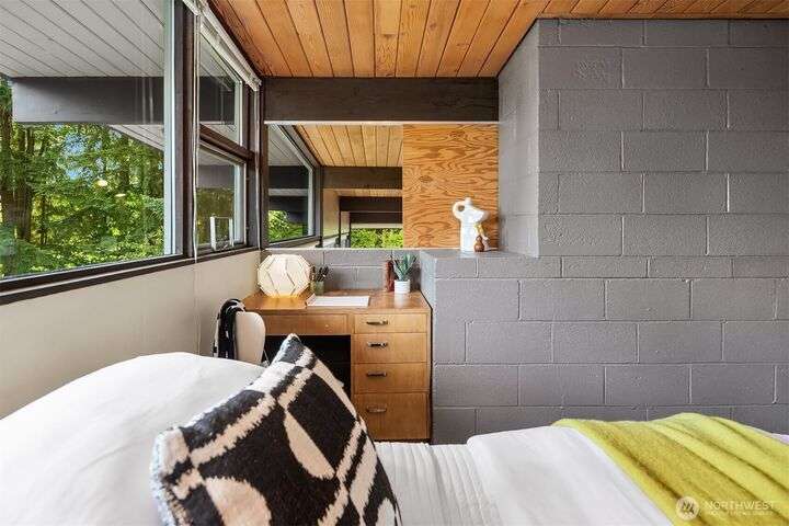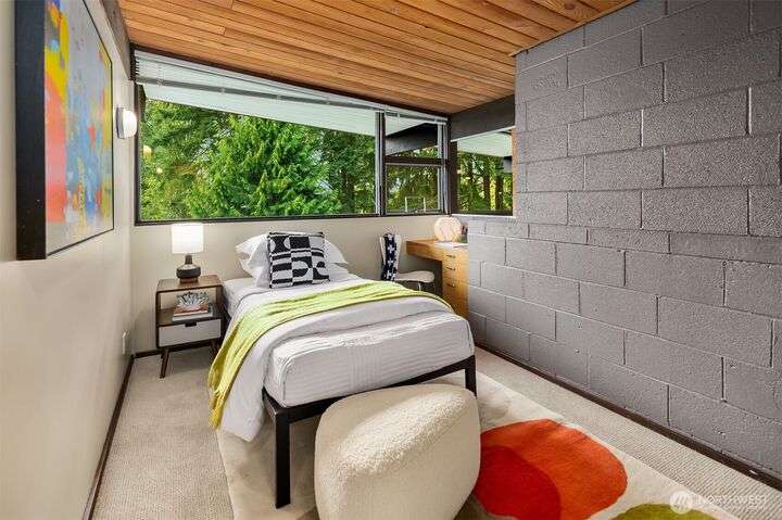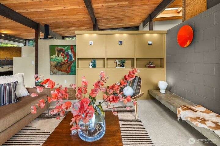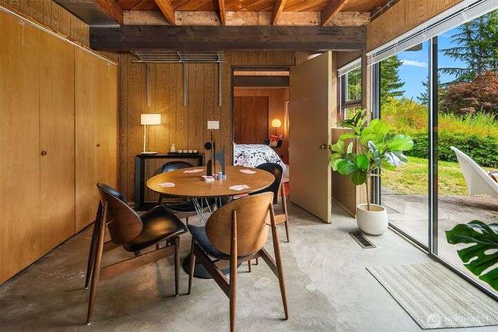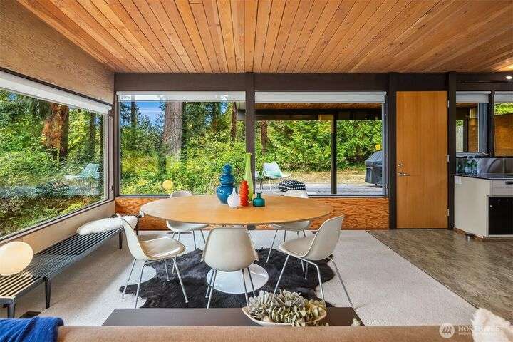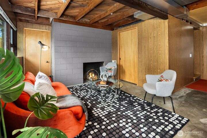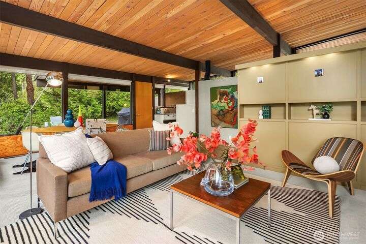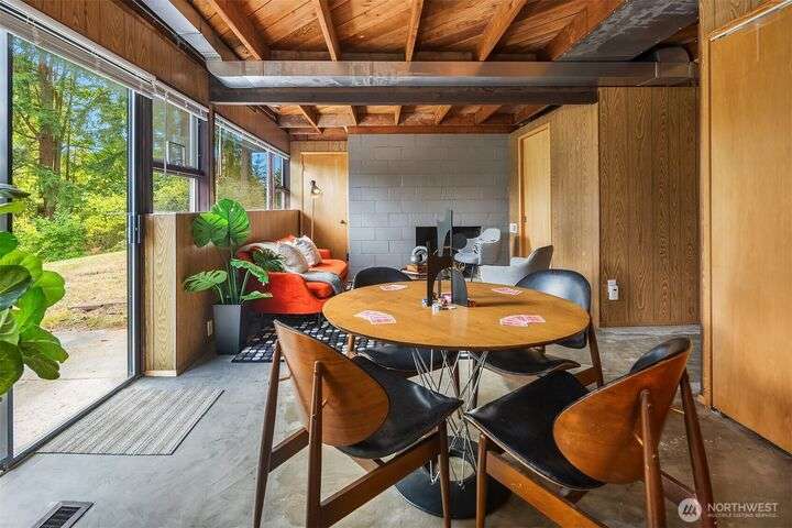 One of 3 Paul-Kirk designs in storied Hilltop community, this special residence has had just 2 families in 75 years fortunate enough to call it home. In quintessential mcm style, a modest but stylish front opens in back to vaulted ceilings with expanses of windows in every room. The entire back of this home faces due south, with deep eaves delivering smart passive solar use in spectacular style. MCM architects were green way before the term became trendy. A covered patio/deck off the kitchen/dining area faces west & extends your living space year-round. Lower level has high ceilings, lots of windows, & opens to the backyard, w/a 2nd wood-burning fireplace keeping things cozy. 3rd bedroom is warm & inviting. Here's your Unicorn.