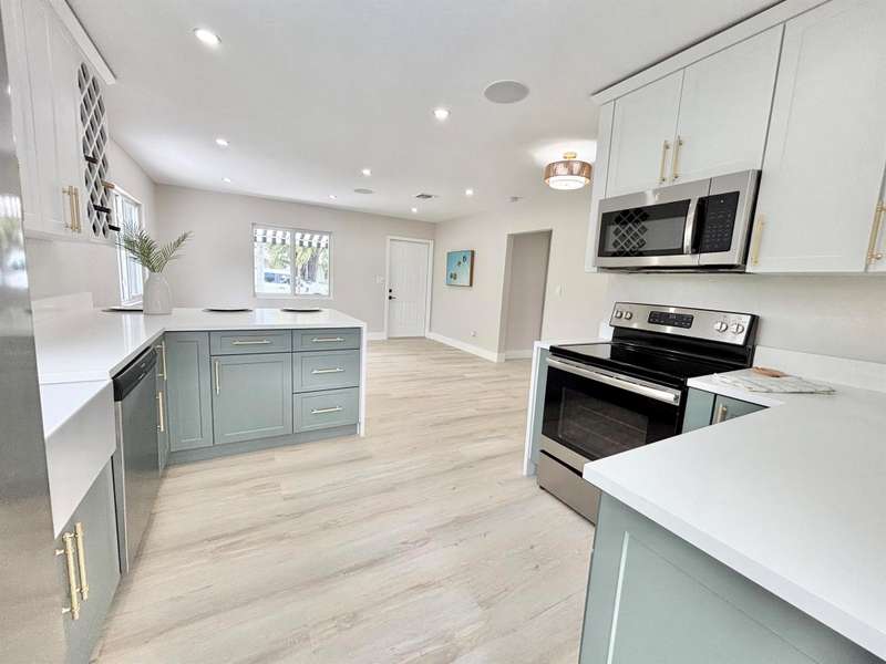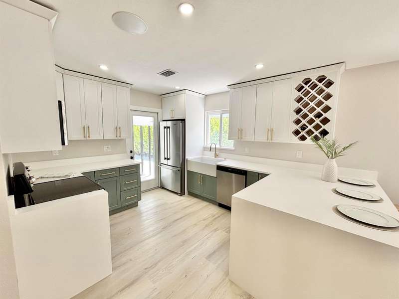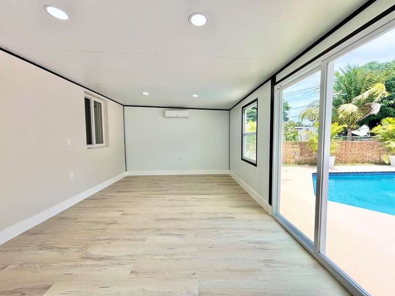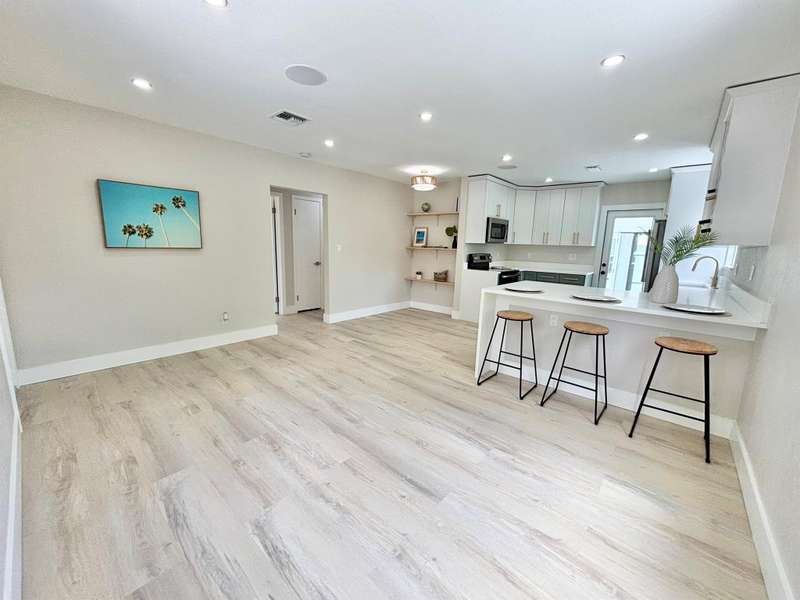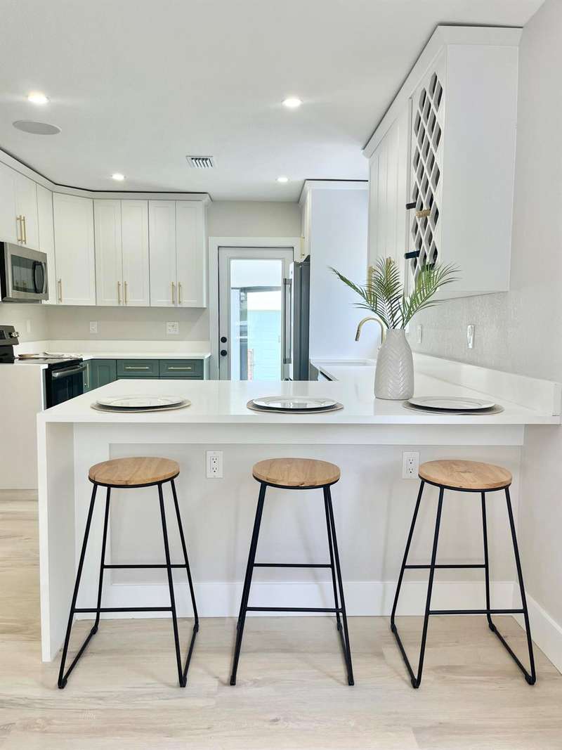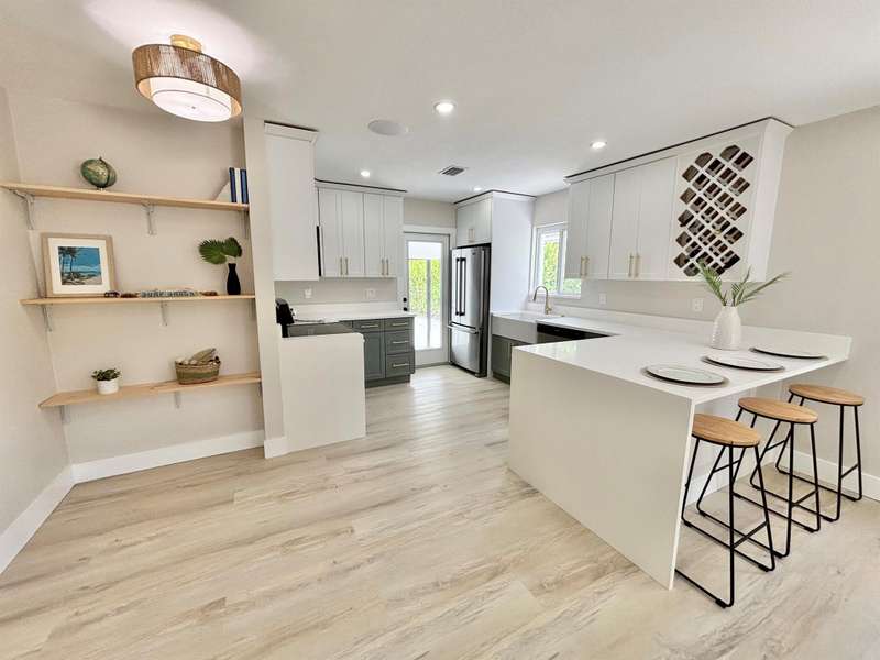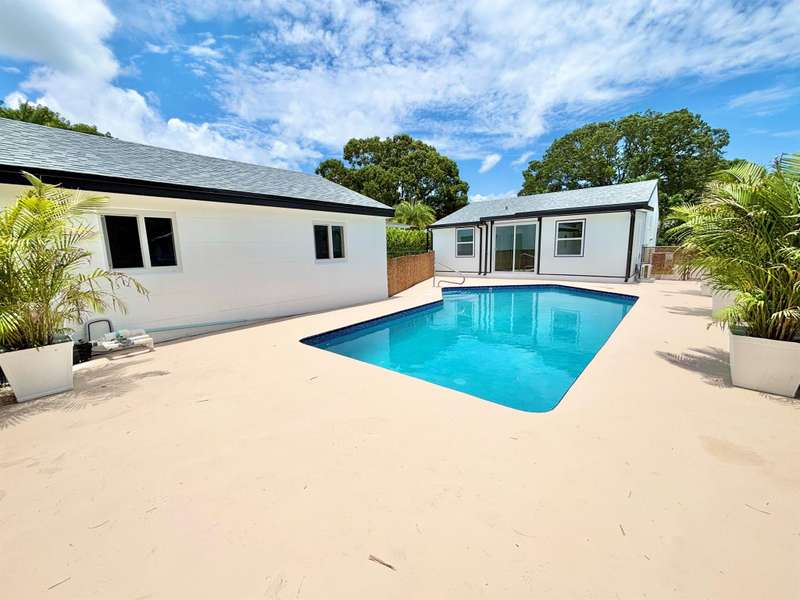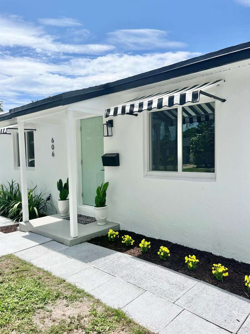 Multiple Offers; H&B Due >> Welcome to 606 Avenida Alegre, a rare property unlike any other! This sun-soaked home boasts 3 Beds / 1 Bath / DETACHED 2 CAR GARAGE / & SALTWATER POOL! Enjoy IMPACT WINDOWS & DOORS and NEW ROOF on BOTH structures! Interior professionally designed w/ a ''Tropical Contemporary'' feel & open concept layout. Masterful kitchen complete w/ sage green/white cabinetry, quartz countertops, SS appliances. Eat-in kitchen large enough for 3! Waterproof vinyl flooring & 5inch baseboards throughout. Gorgeous bath w/ mosaic flooring & textured tiles. Built-in sound system! Third bedroom is attached w/ separate entry, pool views, & its own mini-split cooling. Perfect for an entertainer's pool room/cabana, third bed, home office, or more! Luxurious ''Hawaiian Blue'' pool is