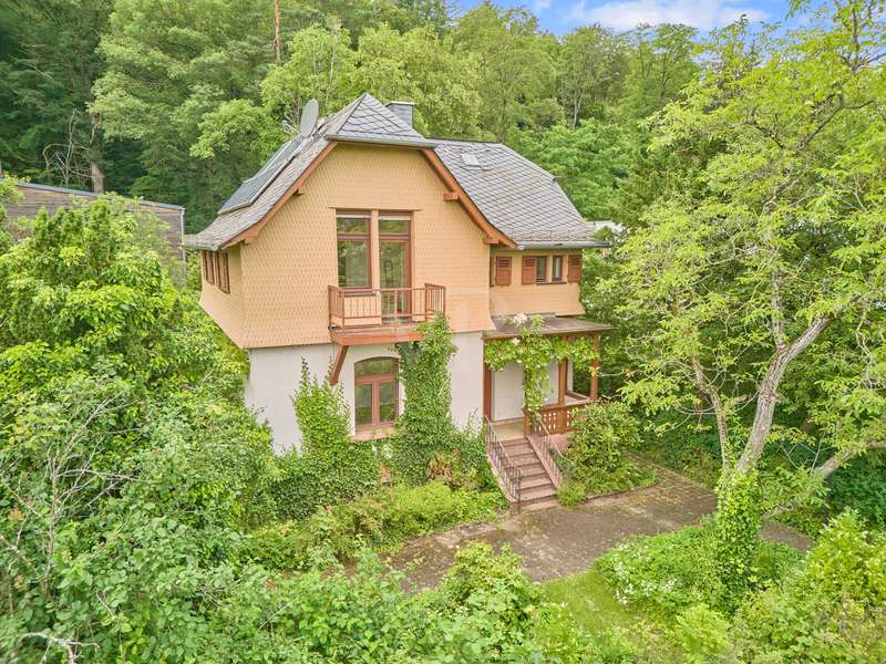 For sale is a charming, listed villa, which was built around 1896 and is characterized by its old building style. It is one of the oldest houses in Trautheim. The veranda next to the entrance was added in 1906 and fits in perfectly with the chic style of the house. The property offers a living space of approx. 127 m² and extends over two levels. The spacious plot of approx. 1237 m² is situated directly on the edge of the forest in an idyllic location surrounded by greenery. The interesting architecture of the house offers a promising basis for a sophisticated renovation to restore it to its original splendor. The well thought-out room layout of the property offers a total of 4.5 rooms, including 3.5 bedrooms, providing plenty of space for a family or individual design options. There is a bathroom with bathtub and a guest WC on the mezzanine level. The kitchen with pantry completes the room program of this extraordinary property. Particularly noteworthy is the beautiful wooden staircase, which enriches the interior with its historic charm. The spacious garden directly adjacent to the forest invites you to spend relaxing hours outdoors and offers plenty of space for leisure activities or gardening. A single garage offers space for a vehicle and the spacious, solid garden shed provides additional storage space. The location of the house, right on the edge of the forest, offers a peaceful environment and the opportunity for walks and relaxation in the countryside. In summary, this listed villa with its large plot and existing features is an exciting opportunity for anyone who enjoys breathing new life into a historic building and designing it according to their own ideas. Interested buyers are invited to view this unique property and get a first-hand impression of its potential.