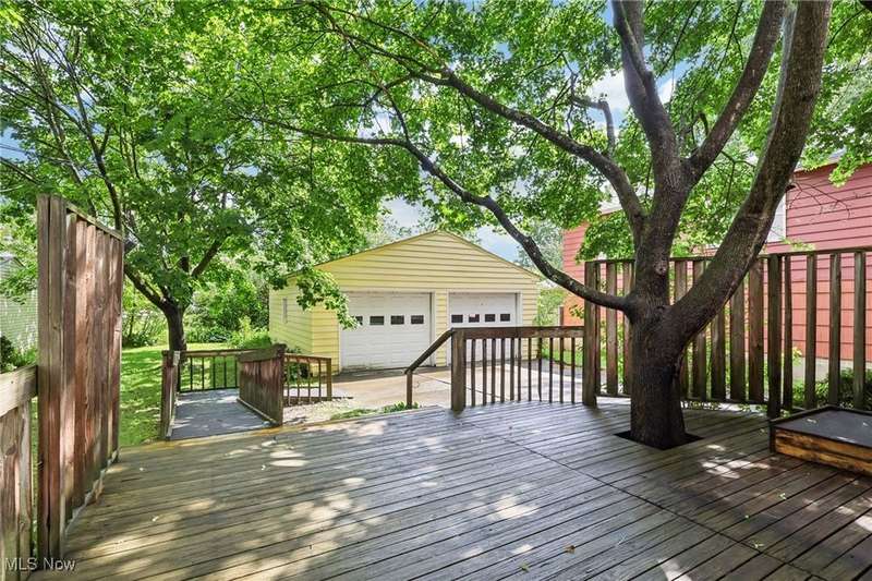 Here it is, affordable 3 bedroom Cape in Cuyahoga Falls. Relax in the front living room (hardwood floors under the carpet) and the dining area that leads to the oak kitchen with lots of cabinets and appliances. Two bedrooms on the first floor (one most recently used as a den has an attractive wall of bookshelves). Entertain or just relax on the private back deck. Enough yard to enjoy but not so much to maintain, and lots of shade. The 2-car garage, rare in the Falls, is a great feature, with paved driveway. And it's in a fantastic location, a block from new middle-high school (under construction, 2026) and central to Portage Crossings for groceries, food, coffee; Front Street for entertainment/festivals/music, restaurants, retail, the new riverfront walk (under construction): and the Merriman Valley with more of the same, lots to see and do. Close proximity to Route 8 to commute, several parks and Cuyahoga Valley National Park with all their features, and Brookledge Golf. Home has Replacement vinyl windows. July2025 will add updated electric from weather drip and new panel; also AC serviced and re-charged. Bring your cosmetic preferences and home sweet home!