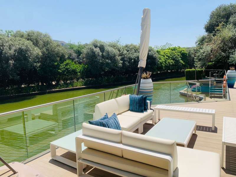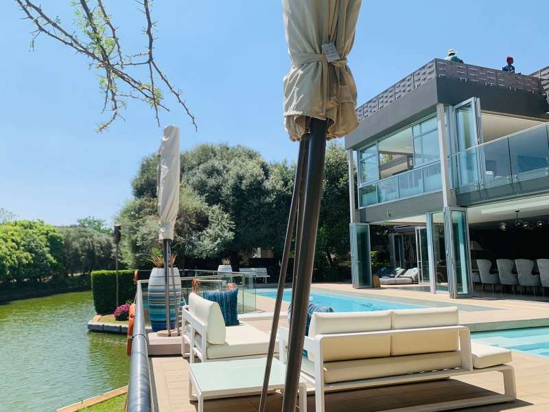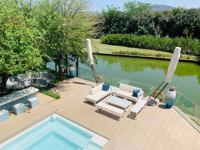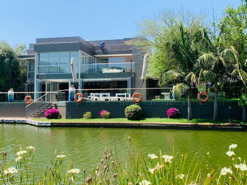 Discover unparalleled luxury living, in the serene and picturesque Islands Estate, with this exquisite 6-bedroom modern mansion. Nestled along a tranquil canal, this home offers a perfect blend of contemporary design, opulent amenities, and breathtaking natural beauty. Property Features: Contemporary Design: Architectural elegance and sleek lines define the facade and interior spaces of this modern mansion. Spacious Foyer: A grand entrance foyer sets the tone for luxury as you step into this stunning residence. Open Floor Plan: The open floor plan enhances the sense of space and connectivity throughout the living areas. Living Room with Canal Views: The expansive living room features floor-to-ceiling windows overlooking the canal, bathing the interior with natural light and offering stunning water views. Gourmet Kitchen: A culinary delight with state-of-the-art appliances, a center island, and stylish cabinetry, seamlessly connected to a formal dining area and outdoor terrace. Outdoor Oasis: An expansive terrace overlooks the shimmering infinity pool, blending harmoniously with the canal, perfect for outdoor dining and relaxation. Private Outdoor Spaces: Lush landscaping and mature trees surround the property, providing privacy and a serene environment. Entertainer's Delight: Outdoor amenities include a barbecue area, outdoor lounge, and an elegantly designed pool, creating a perfect setting for entertaining guests. Security: Located in the Islands Estate with 24-hour security, ensuring peace of mind and exclusivity. Islands Estate: The Islands Estate is renowned for its tranquil ambiance, and exclusive waterfront properties, offering residents a secure and luxurious lifestyle. This modern mansion epitomizes waterfront living at its finest, combining contemporary architecture, with the serenity of canal-front views, making it a true gem in Hartbeespoort's real Estate market. Experience the epitome of luxury living~~schedule your viewing today...!!