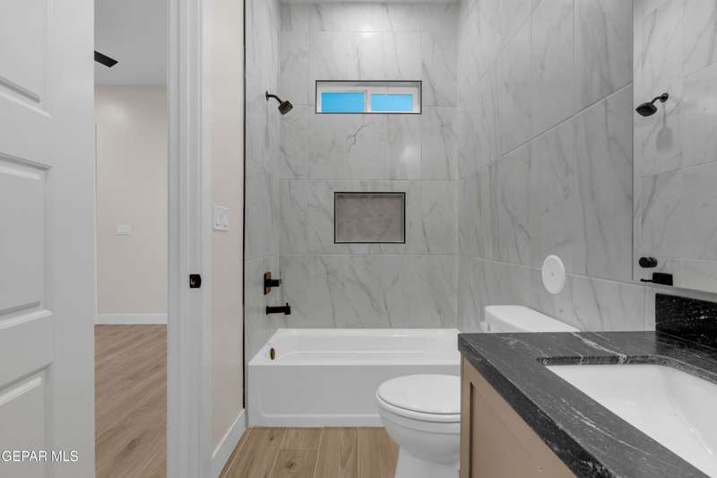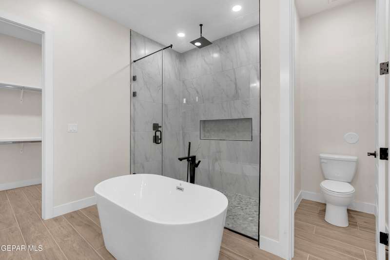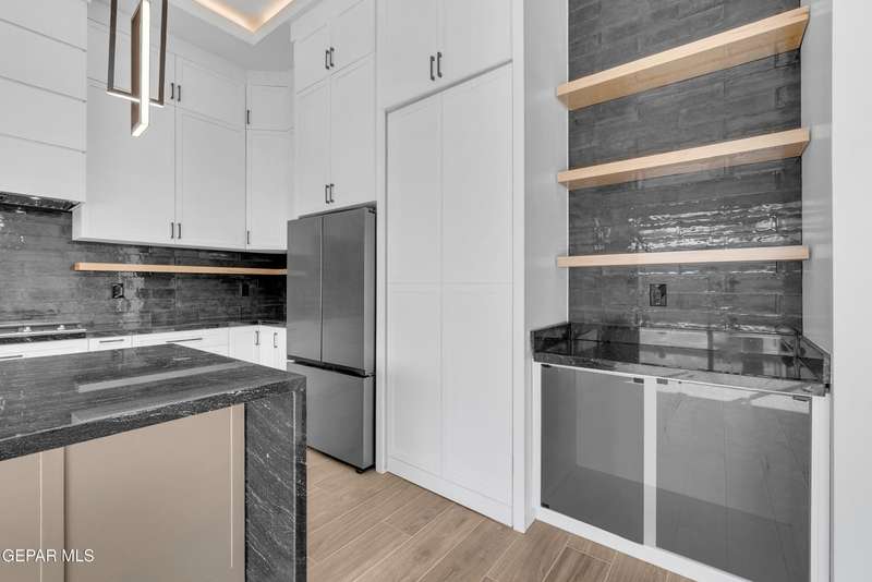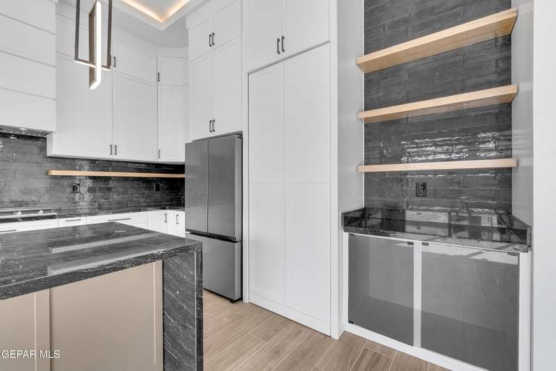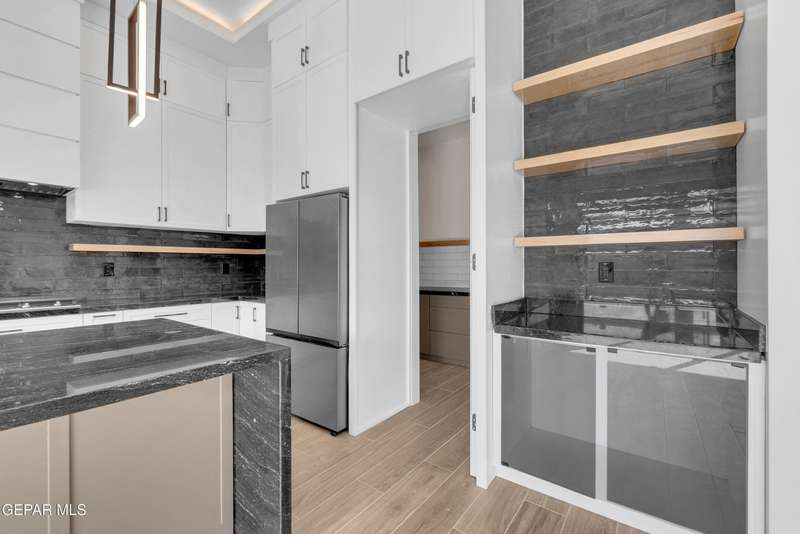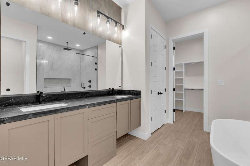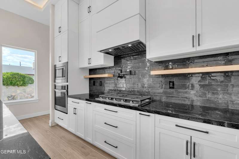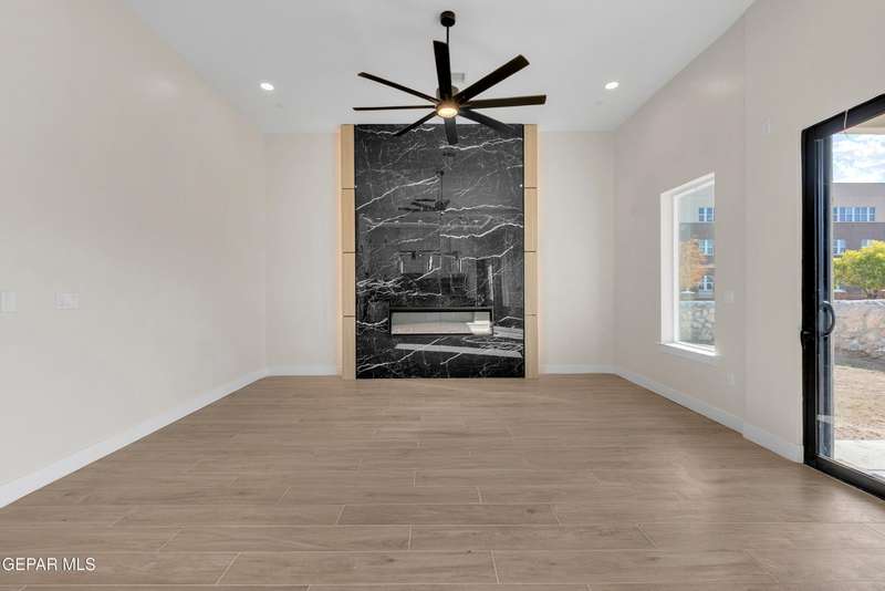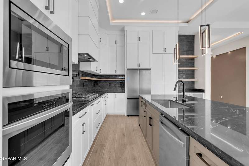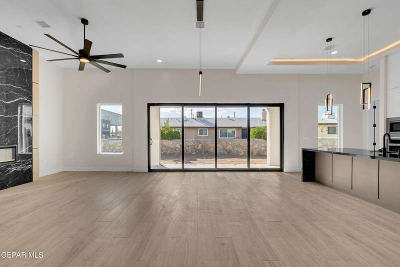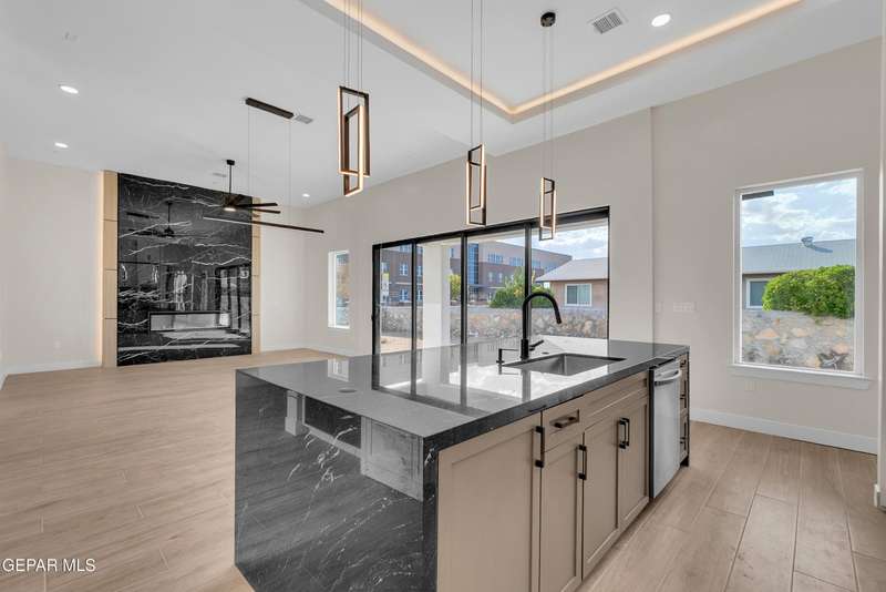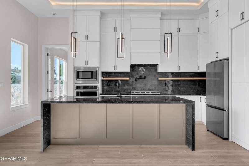 Welcome to The Brady! This stunning luxury/new construction 4bd, 3.5 bath home perfectly blends luxury, comfort, and functionality in an established neighborhood. Step through the grand entry foyer and experience an open-concept layout enhanced by 10-12 ft ceilings, custom lighting, large format tile and designer finishes throughout the entire home. The kitchen showcases sleek granite countertops, a butler's pantry, built-in mini bar, custom cabinetry, and a large island that flows seamlessly into the living and dining areas-ideal for entertaining family and friends. Expansive oversized windows and a 16 ft four-panel sliding door flood the interior with natural light. Retreat to the primary suite, featuring a spa-style bath with a large walk-in shower, freestanding soaking tub, and an impressive oversized closet. A mini master suite provides the perfect private space for guests or family. The Brady sets the new standard for modern living in El Paso. Schedule your private tour today.