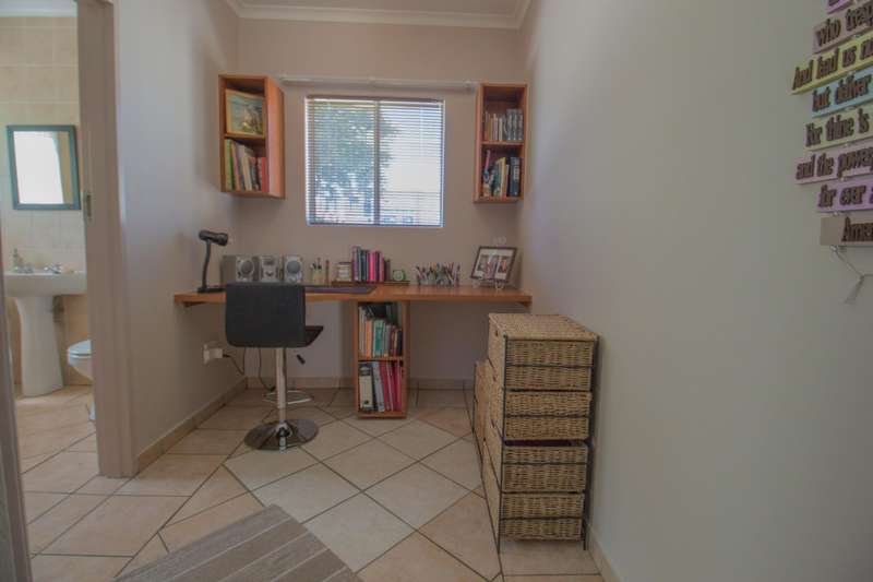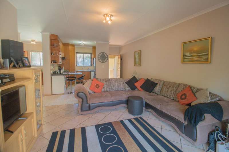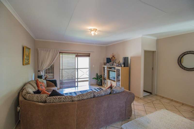 Situated in a nice position in the complex, you will find this 2 bedroom 2 bathroom upstairs unit. The living areas are tiled whilst the bedrooms are carpeted. The entrance will lead you to the lounge and dining room area. The covered patio has got a built-in braai. The kitchen is finished with granite tops, has got a breakfast nook, and offers space for 1 appliance and a fridge. The well-sized bedrooms have got built-in cupboards. The MES has got a shower, basin, and toilet, whilst the second bathroom has got a bath, toilet, and basin.