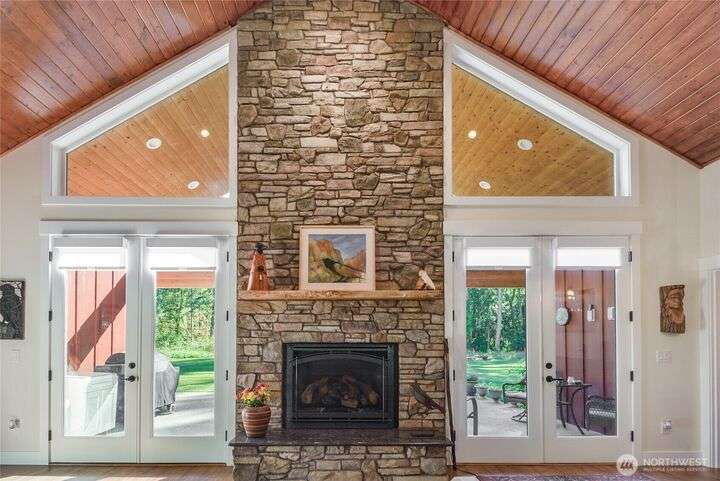 Gorgeous builder’s home on 6.39 acres—crafted with top-quality upgrades throughout! This 2,600 sq. ft. rambler features a chef’s kitchen w/ marble countertops & island, upgraded stainless appliances and 6-burner double oven range. Enjoy the floor to ceiling rock fireplace with maple live edge mantle and pine ceilings. Solid wood front and interior doors. Grand primary bedroom and 4-piece ensuite w/ heated floors. Four mini splits, tankless water heater, wet bar, and lifetime metal roof. 2 car detached garage. Double French doors lead out to the expansive covered patio located off of the great room. Every inch reflects pride of ownership. Sit amid serene nature, offering privacy and a true sense of retreat. Truly a must-see unique property.