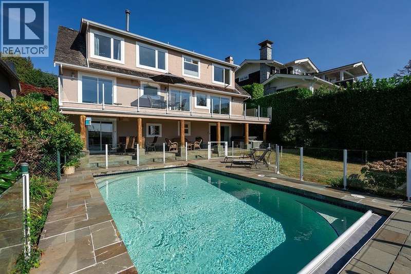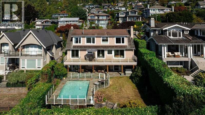 Live every day like a vacation in this sun-drenched Dundarave 5 bdrm 3.5 bth home with panoramic ocean views from every level. Over 4,000 sq. ft. of beautifully updated living space features a gourmet island kitchen, elegant entertaining areas, & a 48-ft balcony for unforgettable sunsets. The luxurious primary suite boasts a walk-in closet, solarium, & spa-like ensuite. The walk-out lower level is an entertainer´s dream with rec room, covered deck, hot tub, & a resort-style self-cleaning Trasolini pool w/motorized cover. With 1,600+ sq. ft. of outdoor living, 2-car garage, and walkability to the Seawall, Village, beaches, and top schools-this is West Coast living at its finest. 60' Frontage. Open House Sunday Nov 16th - 2-4pm (id:58403)