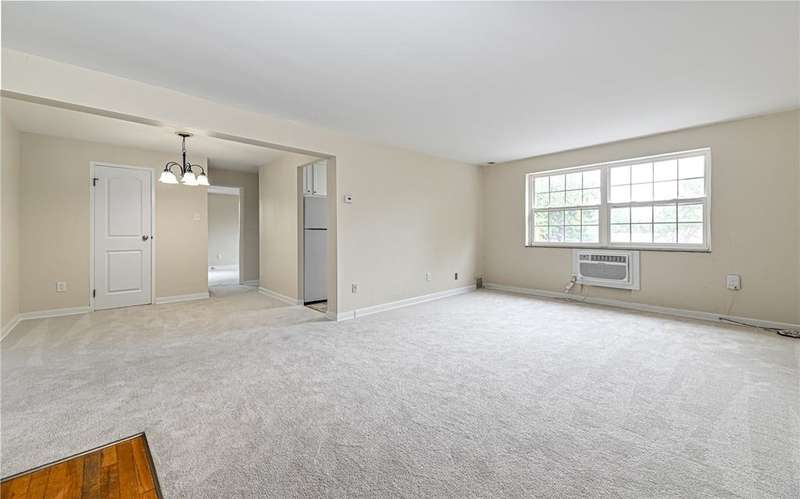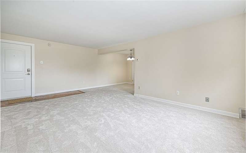 MOVE IN READY condo in desirable Highland at Chapel Hills building. Nicely painted with brand new carpeting. Updated kitchen with white kitchen cabinetry and brand new microwave. Updated bathroom and light fixtures throughout. Oversized bedroom will fit a king sized bed and features a large closet with built in organizer. Warm and welcoming living and dining room with large closet. New A/C wall units. Controlled access building with elevator. Need to go up front door steps to get into condo. Community laundry, recreation room and private storage locker. Unassigned owner parking on side, back or front of building. Parking around front circle is reserved for guests. HOA fee includes water, sewage, trash, building and common area maintenance. Perfect location within walking distance to shopping and dining. Quick commute to Downtown, Cranberry and minutes to McCandless Crossing, Ross Park Mall and surrounding hospitals.