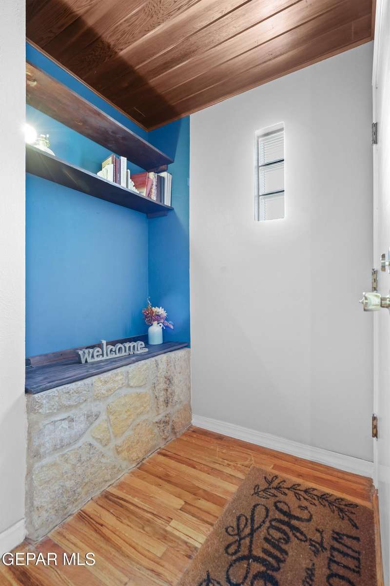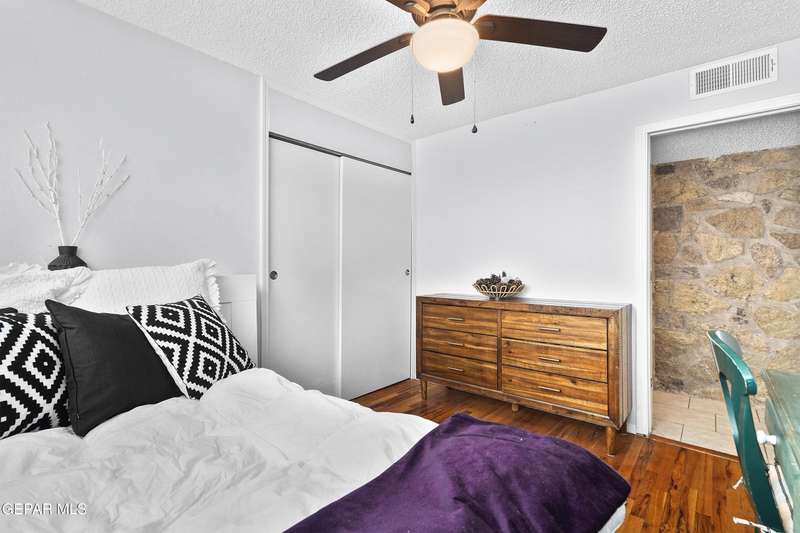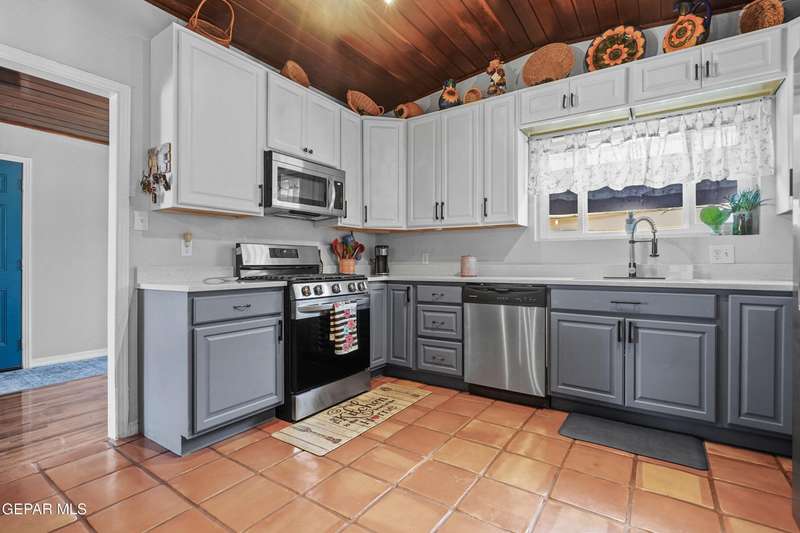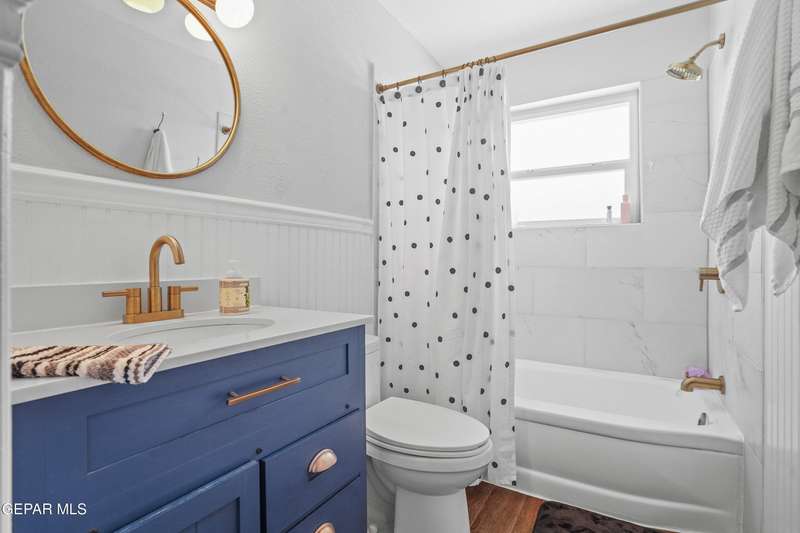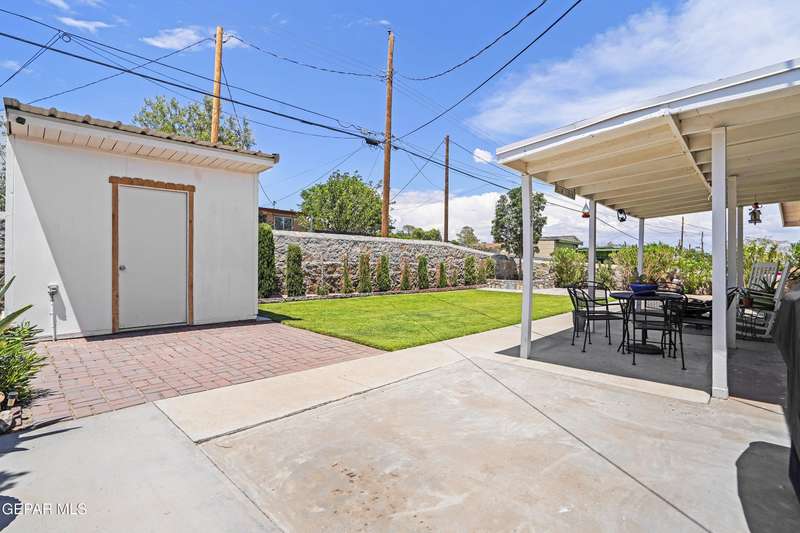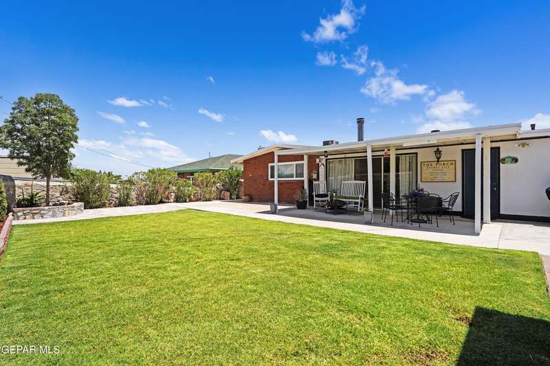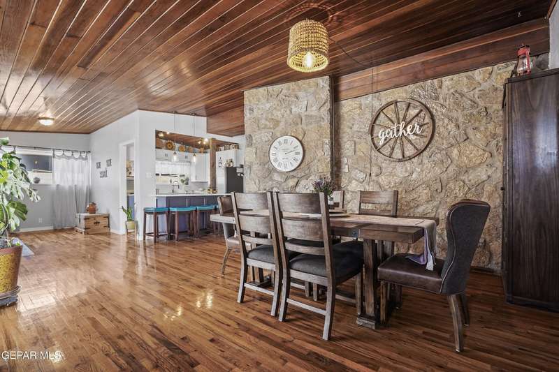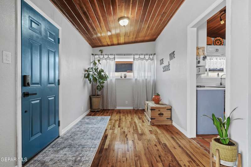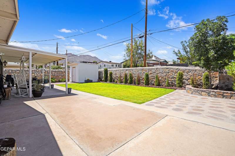 Charming 3-bed, 1.75 bath home in the heart of Central El Paso's Summit Place. With 1,752 sq. ft., this updated gem features original hardwood floors, wood-accented ceilings, and two cozy fireplaces, including a beautiful double-sided one in the dining and living area. The remodeled kitchen boasts quartz countertops, a spacious island, and open living area perfect for entertaining. The layout includes a formal sitting area, two flexible living spaces, a dedicated laundry room, and a bonus storage room. All bedrooms are located down a private hallway for added privacy. Step into a lush, green backyard with mature landscaping, ideal for cookouts and gatherings. This home blends classic charm with modern touches and is ready to welcome its next owner!