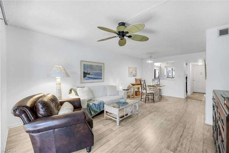 OWNER IS MOTIVATED! FURNISHED! Great first floor condo in a 55 plus communty, now available in move-in condition. The 2 Bedroom / 2 Full-bath unit is Furnished! The home offers newer A/C and appliances, a queen bed in the 2nd bedroom , as well as a queen bed in the masterbedroom, laminated / tile floors . The living room features a TV, and both bedrooms have TV'S as well. Relax by your private Community clubhouse and or large social Pool, play Pickleball, Tennis, Bocce or Shuffle Board. The community organizes many social activities, and has a very friendly vibe! Another EXCITING development: a 9 Hole Public Golf Course will surround this community along with a restaurant and Pro Shop. Besides being right next door, residents will get reduced golf fees! This is a public course / no fees will be included in the community fees! This will add much value to this community!