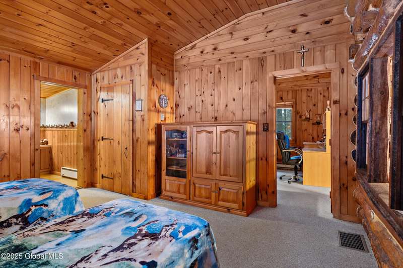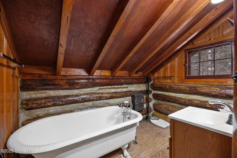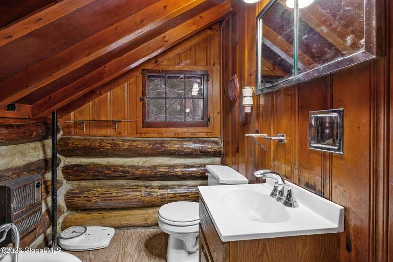 Your year-round home in the Adirondacks with deeded Lake access awaits! Discover living in this authentic Earl Woodward log cabin complete with deeded lake rights to pristine Forest Lake and Lake Allure. Private and exclusive only to Northwoods owners and their guests. In the summer enjoy swimming and fishing in the lake as well as summer concerts at Lake Luzerne. There is access to over 750 acres of woodland trails close by that are perfect for hunting, hiking, biking, ice fishing, snowmobiling & more! On the first floor you will find an en-suite bedroom, office or second bedroom, a large open living room with stone fireplace, built-in bookshelves, separate dining room, kitchen and half bath. Make your way upstairs to find two more bedrooms and a full bath with original clawfoot tub. Just a few minutes to the Northway, 10 minutes to Lake George, 30 minutes to Saratoga Springs and many awesome ski mountains close by! This authentic log cabin can be a special retreat away from the city but can also be a beautiful place to live year-round.
