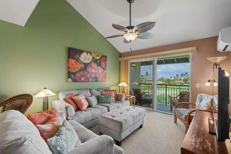 Stunning 2-bedroom, 2-bath upper-level furnished unit with beautiful ocean/sunset and golf course views. Remodeled in 2014, features include new window treatments, tile, new kitchen appliances, full renovations of both bathrooms (toilets, sinks/faucets, countertops, shower, bath enclosure and lighting). Replacement of front and back door screen doors, new lighting in kitchen and dining room, and new ceiling fans. Installation of air conditioners in bedrooms and living room (2017). New water heater installed (2021). This is a pet-friendly community featuring a pool, spa, clubhouse, workout area, and built-in barbecue grills. World-class shopping, dining, beaches, and golf are all just a few minutes away. If you’re looking to truly experience the Wailea lifestyle, complete with gorgeous ocean views, this is the home for you!