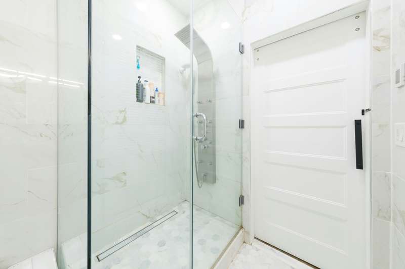Sun-filled recently renovated 2 bedroom and 2 bathroom condo in a prime midtown Hoboken location. This condo features an oversized skylight, Hunter Douglas blackout shades, stainless steel appliances, frameless glass shower enclosure, freestanding soaker tub, newer main bathroom vanity, heated Italian Carrara marble floors, in-unit washer/dryer combo, HVAC with Ecobee thermostat, new intercom system and plenty of storage. One of the bedrooms comes complete with a Murphy bed and en-suite bathroom. The building offers an additional laundry room in the basement and a beautiful shared backyard. The condo is located in close proximity to the PATH, bus stop to New York City, shopping, cafes, restaurants and a resident rental parking garage at 916 Garden Street. Available for move-in on 10/15.