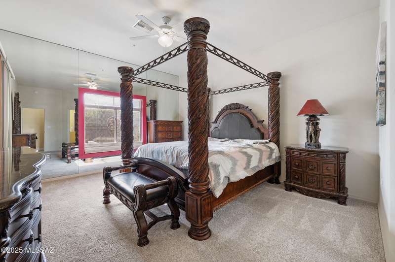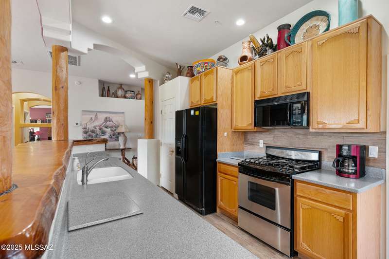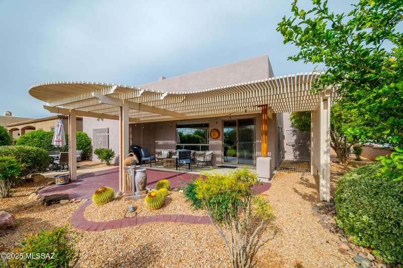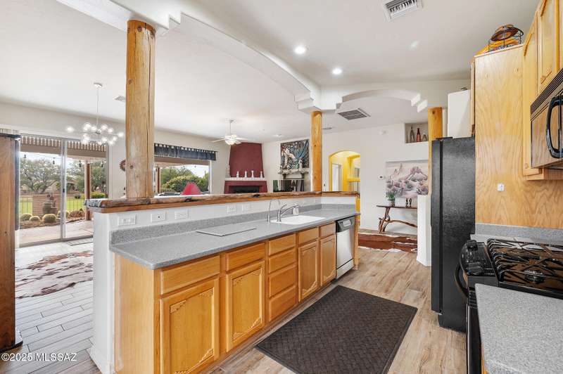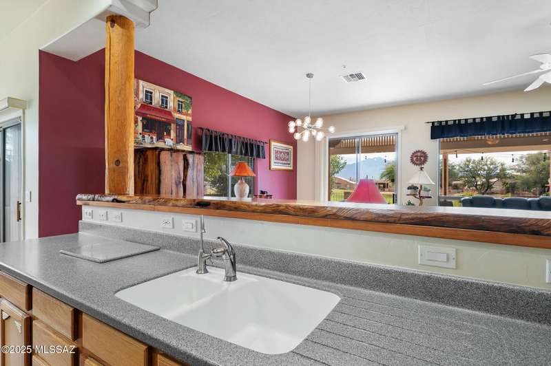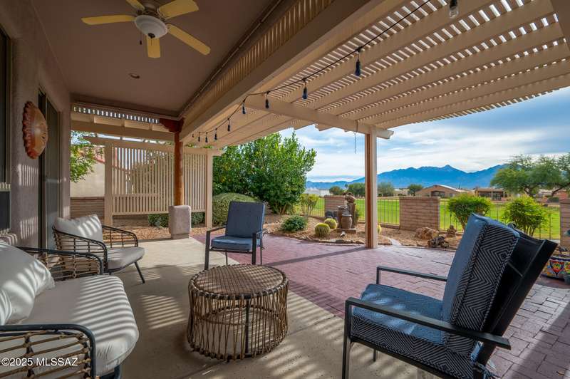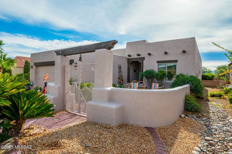 It's all about the view! See the Santa Rita's and the 10th fairway of Torres Blancas golf course. Dramatic gas burning beehive fireplace. Stunning Santa Fe styling.