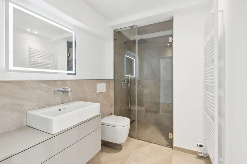 This exclusive apartment with high-quality furnishings is located in a modern apartment building that was renovated in 2024. With a living space of approx. 113.95 m², the apartment offers generous space for individual living dreams. The apartment has a total of three rooms, including two bedrooms and a bathroom. The high-quality underfloor heating ensures pleasant warmth in all rooms. The designer fittings in the bathroom and the custom-made fitted kitchen with brand-name appliances underline the modern and luxurious character of the apartment. The bathroom impresses with luxurious materials and a walk-in shower. Two balconies/terraces offer opportunities to relax outdoors and offer beautiful views. The panoramic windows allow plenty of light into the rooms and create a bright and friendly atmosphere. The apartment also impresses with its well thought-out room layout, which creates a pleasant feeling of living. The high-quality materials and attractive interior design invite you to design your home according to your own ideas. The central location of the apartment offers good connections to public transport and stores for daily needs. There are also restaurants, schools and parks in the surrounding area, which contribute to a varied range of leisure activities. This property is ideal for discerning tenants who are looking for a modern, high-quality apartment with upscale furnishings. Arrange a viewing today and see the benefits of this property for yourself.