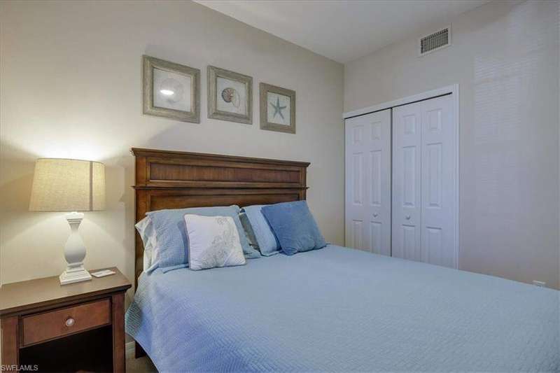 Spacious 2-bedroom, 2-bath condo in Colonial Country Club with a serene preserve view. Enjoy a large screened lanai with an electric mesh shutter that also acts as a shade. The property backs up to the walking trail and a lake, providing both privacy and tranquility, and is styled with inviting coastal decor. The kitchen is fully equipped and has a Keurig coffee maker. Each bedroom and the living room feature a flat-screen TV for your convenience. Assigned shaded parking included, and the community pool is walking distance. Golf is pay-as-you-play on the championship course. Colonial Country Club offers an impressive array of amenities: a resort-style pool and spa, clubhouse with both fine and casual dining, a state-of-the-art fitness center, library, tennis courts, and walking/bike paths. Located just outside the community are the Spring Training facilities for the Minnesota Twins and Boston Red Sox-perfect for baseball fans. Experience all the benefits of this guard-gated, amenity-rich community while enjoying your seasonal stay in sunny Florida.