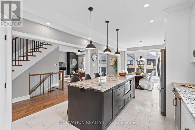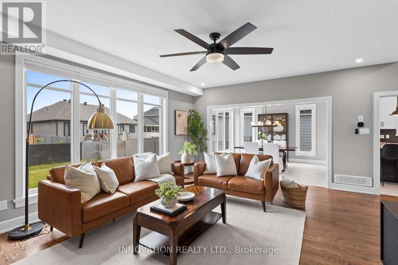 Have you been searching for your dream family home? Welcome to 65 Bald Eagle Crescent nestled in the highly sought-after Richmond Oaks Community!! This beautifully designed 4 bedroom, 3 bathroom home offers just over 2500sqft of living space and was built in 2019. Step through the grand entrance into a main floor designed for both style and function. The custom Chef's kitchen features extended upper cabinets, a large pantry, 8' granite island and 36" stainless gas stove - Perfect for entertaining family and friends! The bright, open layout is complemented by hardwood throughout, massive windows that fill the home with natural light and the convenience of main floor laundry. A custom oversized main closet keeps backpacks, coats and shoes tucked neatly away. The dedicated main floor office (complete with Rockwell soundproofing) offers the ideal space for working from home or any creative hobbies. Upstairs the primary suite is a true retreat, boasting dual walk in closets and a custom designed 4-piece en-suite. Three additional bedrooms and a Jack and Jill style 4-pc main bath, ensure there is enough space and comfort for the whole family. The unfinished basement offers a blank canvas with large windows and a roughed in bathroom, ready to become your dream rec room, gym or guest suite. Outside, enjoy your Red Cedar screened-in porch overlooking a yard big enough for an inground pool! Set on a quiet street just minutes from parks, schools and all the wonderful amenities of Richmond. Book your showing today!! (measurements and floorplans are derived by electronic means) (id:6509)