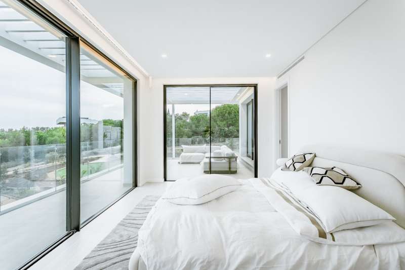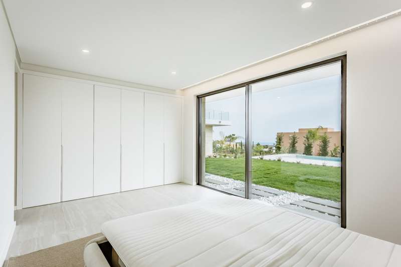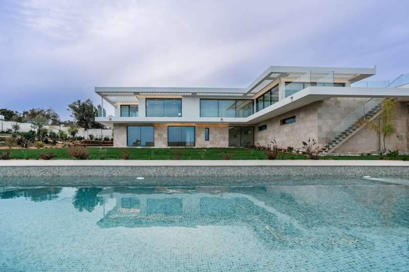 This fantastic modern villa is located in the Palmares Golf Resort in Lagos, one of the most prestigious areas in the Algarve. Set in tranquil surroundings, the villa offers fabulous panoramic sea views and is less than 5 minutes from the beach. This property is spread over 3 floors and comprises a gym, elevator, 4 bedrooms all en suite, wonderful terraces facing the sea and the possibility of building a cinema room. The property also has a large south-facing garden with a leisure area and swimming pool, with total privacy from the surrounding area. Contrary to usual practice, the villa has the 2nd floor as its main floor, with the aim of making full use of its views. The villa is close to amenities and points of interest, as well as golf courses for lovers of this sport. Located 1 hour from Faro International Airport. CHARACTERISTICS: Plot Area: 2 755 m2 | 29 656 sq ft Useful area: 340 m2 | 3 660 sq ft Deployment Area: 225 m2 | 2 422 sq ft Building Area: 340 m2 | 3 660 sq ft Bedrooms: 4 Bathrooms: 5 Garage: 2 Energy efficiency: A FEATURES: 4 bedrooms 3 floors Sea views Gym Elevator Swimming pool Possibility of building a movie theater