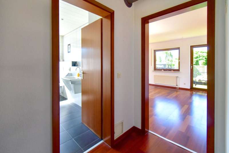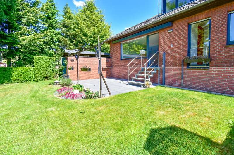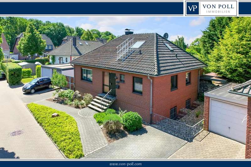 This attractive detached house from 1979 offers you a spacious and comfortable living ambience on a living space of approx. 208 m². The house is situated on a plot of approx. 662 m² and offers enough space for a family as well as versatile usage possibilities. The property comprises a total of six rooms, including five spacious bedrooms that are ideal for family members or guests. Three bathrooms, a modern bathroom on the first floor, a guest WC and a further bathroom in the basement, offer sufficient comfort for all residents. The bathtub bathroom on the upper floor completes the offer harmoniously. The living area is characterized by a fireplace in the living room, which creates a cosy atmosphere and invites you to spend relaxing hours. The option of an open kitchen makes it possible to customize the living concept. The adjoining utility room offers additional storage space and makes daily housework easier. The property has undergone extensive technical modernization in recent years: The heating system was replaced in 2021 to ensure efficient heating from the gas heating system. The electronics in the house have also been brought up to date. The windows were partially replaced in 2011 and contribute to good energy efficiency, which is further supported by the new insulation in the basement. A new sewage shaft contributes to the trouble-free operation of the systems. Outside, the terrace was redesigned, making the garden an attractive extension of the living area. The groundwater-powered irrigation system in the garden makes it much easier to maintain the green areas. Partially electric shutters offer additional comfort and security. The basement not only offers space for technology and storage, but also a workshop that will delight hobbyists and DIY enthusiasts, as well as two rooms that can be used for living purposes. Finally, the fact that the possibility of an additional space-creating extension is possible should not be neglected. This well-maintained property not only offers sufficient space thanks to its distribution of rooms, but also a wide range of possible uses, whether for a large family or for working from home. A viewing is worthwhile to experience the numerous advantages of this property in person and to see its potential for yourself. The public transport links and proximity to schools, shops and leisure facilities round off the offer. A personal viewing will convince you of the quality and possibilities of this property.