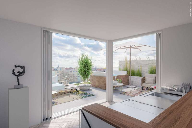 ABOVE - a unique project above the roofs of Berlin Berlin-Schöneberg is full of character. Here ABOVE is located in the middle of a developing avant-garde and the luxurious shopping boulevard Kurfürstendamm. Here, people like it stylish and extraordinary. Artistic freedom is taken for granted. As individual as the district and its residents are, ABOVE is unique: modern penthouses built on an existing building in a prime location. There are 14 penthouses for sale. What is special about them - apart from large roof gardens in each case - is the cut: 2 to 3 rooms and apartment sizes between 121 and 165 square meters on two levels with gallery offer plenty of space. The smartly arranged rooms are made airy by ceilings that are in part about 5 meters high and are equipped with floor-to-ceiling windows.