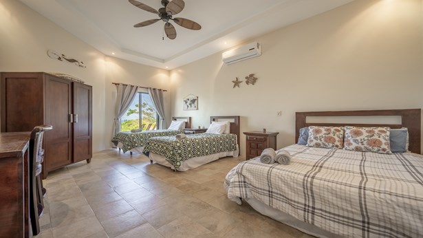 Welcome to Casa De La Promesa — a stunning 5-bedroom, 5.5-bath retreat located in the lush hills of Vistas de Flamingo, in Potrero. Casa de la Promesa is an exquisite Mediterranean-style home that offers a rare combination of privacy, elegance, and natural beauty. This multi-level 5330 sq ft villa is perfectly situated to capture breathtaking panoramic views of the Pacific Ocean, the surrounding mountains, and the green valley below. The home’s classic architecture, with its red-tile roof and arched lines, exudes timeless charm and sophistication from the moment you arrive.Inside, the spacious interior is filled with natural light and warm finishes. The open-concept design flows effortlessly from the gourmet kitchen to the expansive dining and living areas. The kitchen features granite countertops, custom hardwood cabinetry, stainless-steel appliances, and a large center island—ideal for casual gatherings or gourmet entertaining. The adjoining great room is framed by vaulted ceilings with exposed wood beams, creating a bright and inviting space that blends indoor comfort with the beauty of the outdoors. Just beyond the living room, an expansive covered terrace wraps gracefully around the back of the home, seamlessly blending indoor and outdoor living. From this elevated vantage point, take in breathtaking views of the Pacific Ocean, the Flamingo Marina, rolling mountains, and the picturesque farmland below — a truly captivating backdrop for everyday living and elegant entertaining.The home offers 5 generously sized bedrooms and 5 and a half bathrooms, each thoughtfully designed for comfort and privacy. The luxurious master suite includes a private balcony, a spa-inspired bathroom, and large windows that capture stunning ocean and mountain views. Guest suites also enjoy access to outdoor terraces or patios, ensuring every guest has a space to relax and unwind.One highlight of Casa de la Promesa is its resort-style infinity pool and sun deck, which seamlessly integrate into the surrounding landscape. Next to the pool area you will find a mature mango and lime tree! Whether you're enjoying a morning coffee, an afternoon swim, or a sunset cocktail, this serene outdoor setting is the perfect place to take in the sights and sounds of Costa Rica’s natural beauty. The lot is 5156m2. The home also features multiple covered terraces for al fresco dining, a gated driveway with ample parking, air conditioning throughout, and high-speed internet.Located just a short drive from Playa Flamingo, Playa Potrero, and the new Flamingo Marina, Casa de la Promesa is ideally positioned to enjoy the best of Costa Rica’s Gold Coast. Whether you’re seeking a permanent residence, a luxurious vacation home, or a high-end rental investment, this exceptional property delivers a lifestyle of tranquility, comfort, and panoramic beauty.Ready to experience the luxury and tranquility of Casa De La Promesa for yourself? Don't miss out on this incredible opportunity! Contact us today to book a private showing. Your dream home awaits!