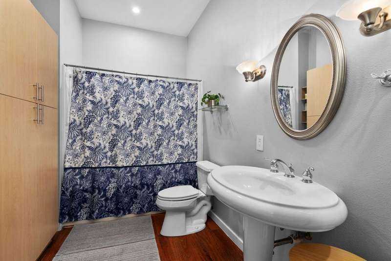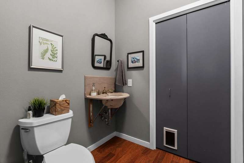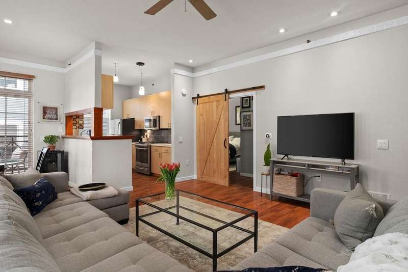 Bright and spacious elevated corner unit with no shared walls and soaring ceilings in a prime downtown location. The thoughtfully updated kitchen features quartz countertops, stainless steel appliances, an artistic backsplash, gas range, and breakfast bar. The open layout includes a sunny living area with a cozy office nook, plus a rare half bath for guests. The large primary suite offers tall windows, a walk-in closet, and a full bath with separate tub and shower. Enjoy in-unit laundry, a private patio, deeded garage parking, and same-floor climate-controlled storage. Just steps from Lake Monona, Brittingham Dog Park, and all downtown Madison has to offer.