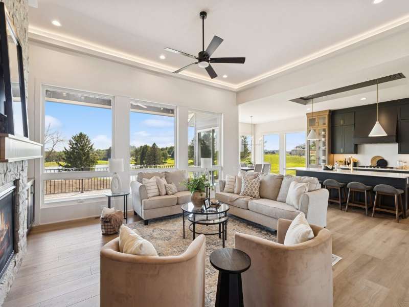 Fully completed new construction by Kimberley Development, voted top builder by the Des Moines Business Record. Located on a acre lot, this 3 BR, 4 bath, 4,030 sq ft walk-out ranch backs directly to a large 6 acre pond, which is owned and maintained by the homeowners association. The first floor has a great room with fireplace, office, laundry room, kitchen with walk-in pantry, primary bath with soaking tub, walk-in tile shower and half bath. The walk-out basement features 2 more BRs, a full bath, large family room and exercise/bonus room. Dont wait to check out one of the best lots in Biltmore, Urbandales newest development. Check last photos to see floor plan.
