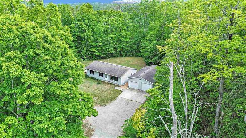 Petoskey Country Living on 5 Acres. Discover the perfect blend of privacy, space with this solidly built 3-bedroom, 2-bath ranch-style home situated on approximately 5 acres along newly paved Roy Road in Petoskey. This single-story home offers main-floor living and includes a full unfinished basement with high ceilings--ideal for creating additional living space to suit your needs. You'll find plenty of room for vehicles, gear, and hobbies with a generous 24' x 40', 4-car garage and another 18' x 24' pole barn--perfect for storing tools, toys, and outdoor equipment. The property is a nature lover's paradise, surrounded by maple trees and visited frequently by deer, turkey, and other wildlife. Located less than a quarter mile from hundreds of acres of state land and recreational trails, this property is an outdoor enthusiast's dream--whether you enjoy hiking, hunting, snowmobiling, or simply spending time in nature. Recent updates include a new roof, boiler, and water heater all within the past four years providing peace of mind and a solid foundation to build upon. While the home invites your personal touch and updates, it offers comfortable living right from the start with room to grow. Will consider selling with more than 5 acres.