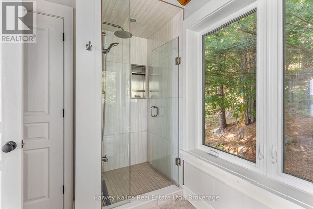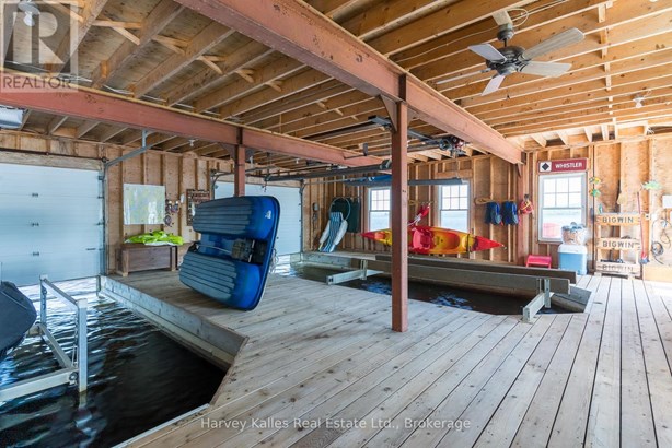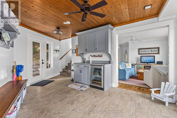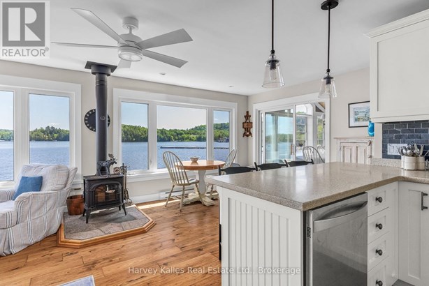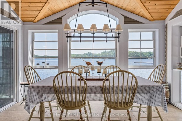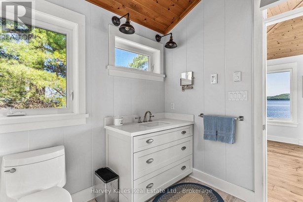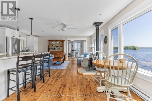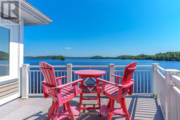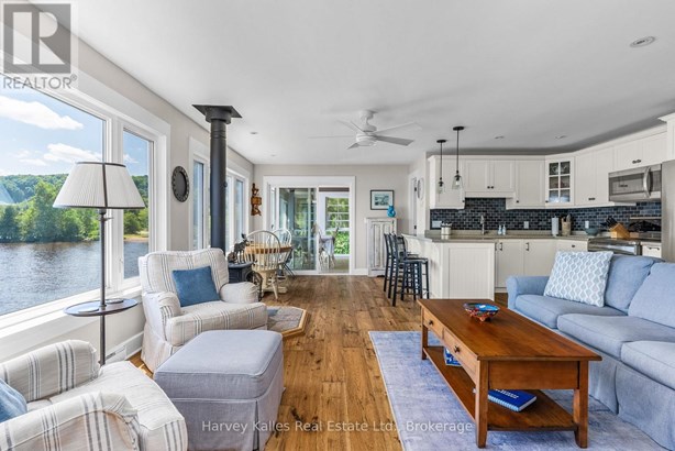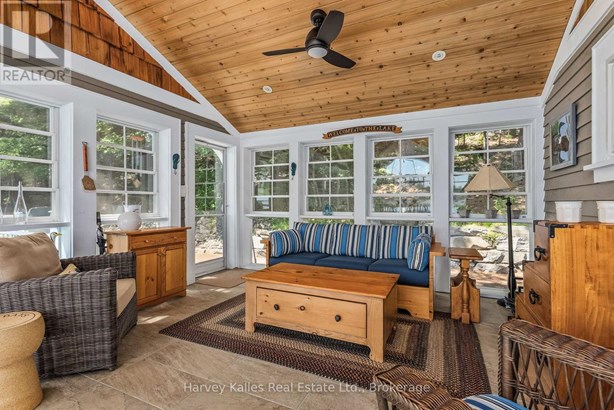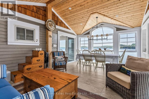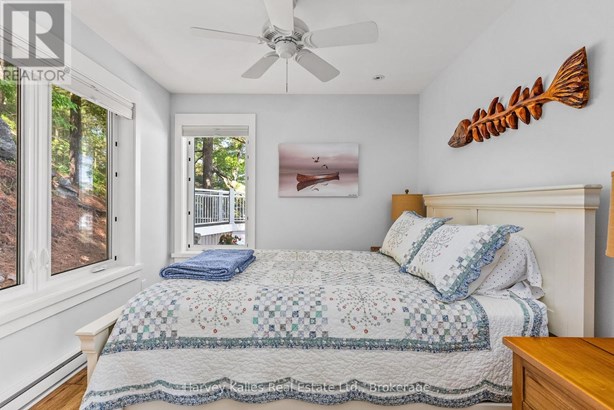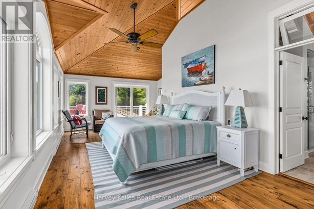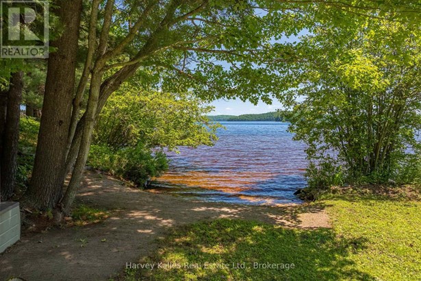 This extraordinary property spans 6.85 acres, featuring an impressive 573 feet of pristine, south-facing shoreline, offering a singular opportunity to experience waterfront living like never before. Ideally situated just feet from the water's edge, this beach house cottage is a true lakeside haven. Designed to maximize lake views from every angle, the interior features a modern kitchen, two living room spaces, and a large enclosed Muskoka room-perfect for gatherings, relaxation, or simply taking in the beauty of the surroundings. The property comes turn-key, with most furnishings included, allowing for an effortless transition to your new lakefront lifestyle. One of the standout features is its stunning primary suite, occupying the entire second level. This sanctuary features a 3-piece ensuite bathroom, a private deck, and breathtaking long lake views. Two guest bedrooms on the main floor offer bright, comfortable accommodations, ensuring that family and friends can fully enjoy their stay. Just steps away, the two-slip boathouse awaits, complete with a substantial composite sun deck ideal for entertaining, sunbathing, or simply enjoying the incredible views. On the opposite side of the cottage, a perfect beach area and a flat grassy space provide ample room for swimming, games, and outdoor fun, ensuring enjoyment for all ages with a gentle sandy entry to the lake. Lake of Bays, one of the largest lakes in the region, offers a vast shoreline waiting to be explored. With convenient access to boat launches and marina services, every day can be an adventure. Properties like this, with unique proximity to the water, expansive land, and comprehensive features, are few and far between. (id:16999)