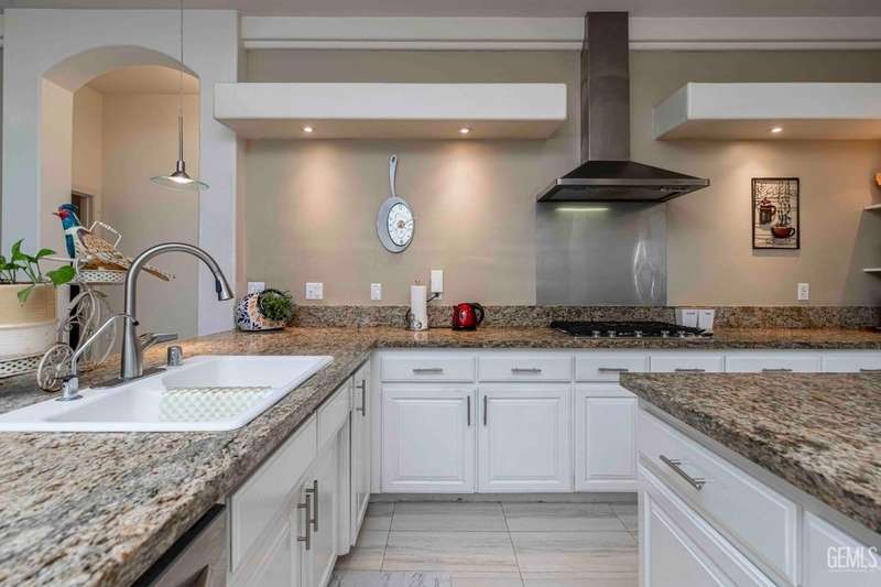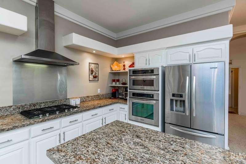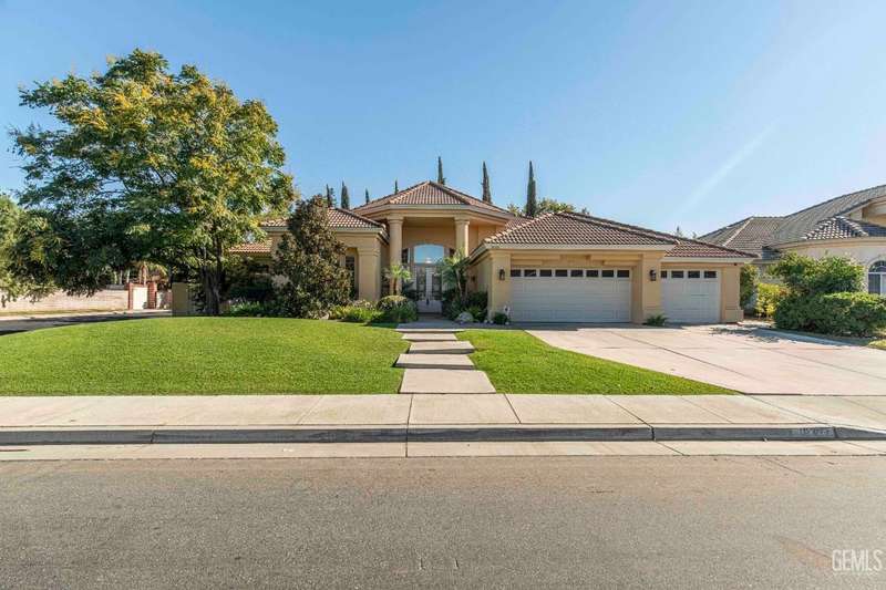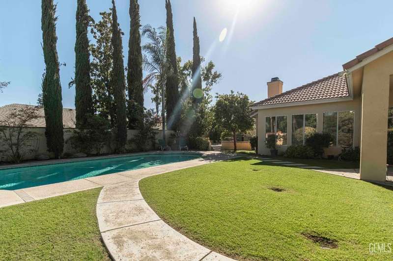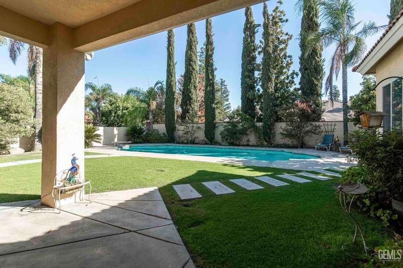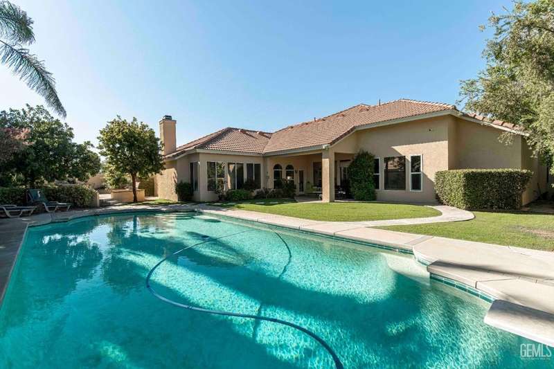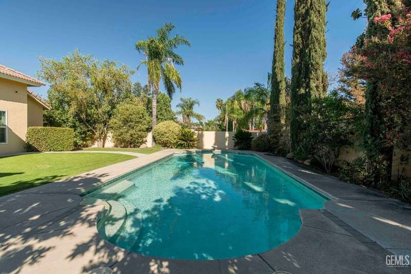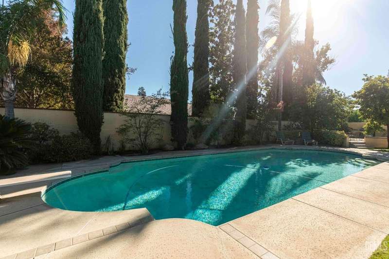 Stunning single-story residence with timeless curb appeal, set on a spacious lot with mature trees & landscaping. Inside, the unique layout offers 3 separate wings, showcasing a formal living room, dining area & a welcoming family room with fireplace and views of the backyard. The gourmet kitchen is designed for entertaining, featuring granite counters, stainless steel appliances, double ovens, gas cooktop & a large island with seating. 5 well-sized bedrooms include a serene primary suite with spa-inspired bath, dual vanities, soaking tub, walk-in shower & generous closet space. Additional highlights include updated bathrooms with custom tile, indoor laundry & abundant storage throughout. Step outside to your private backyard oasis with sparkling pool, covered patio & multiple lounge areas surrounded by greenery. A 3-car garage & extended driveway provide ample parking. Located in a desirable neighborhood, this home blends quality craftsmanship with everyday comfort and style.