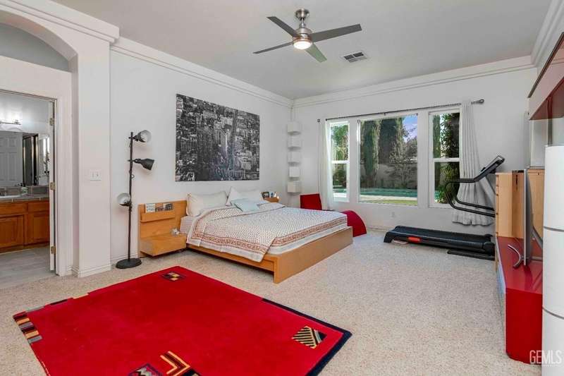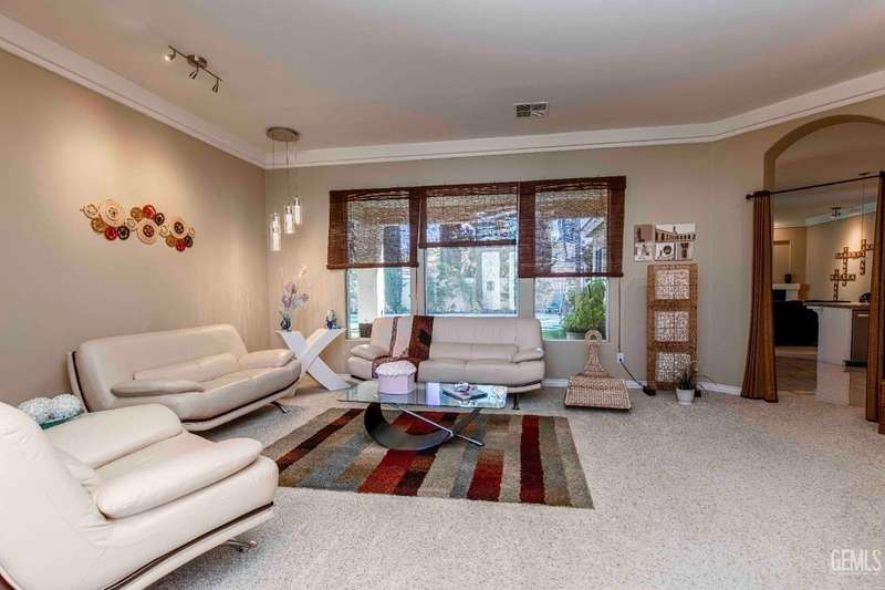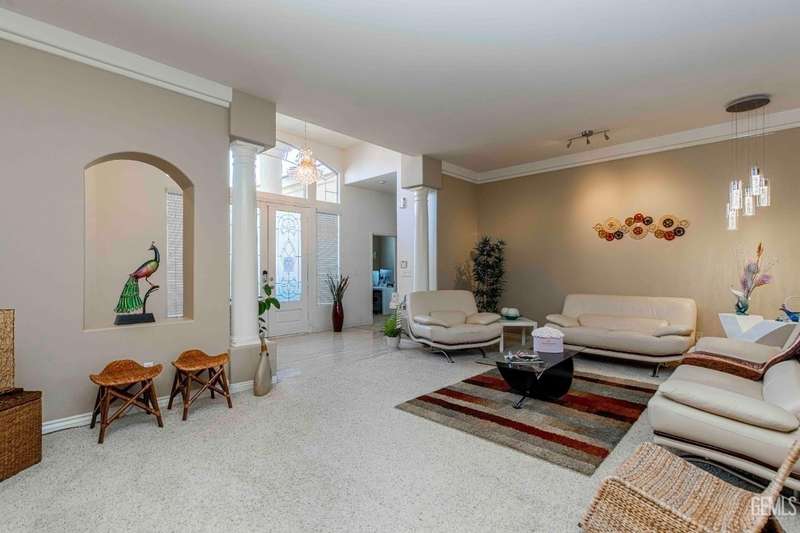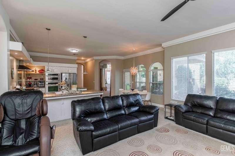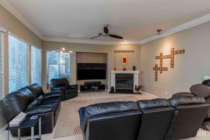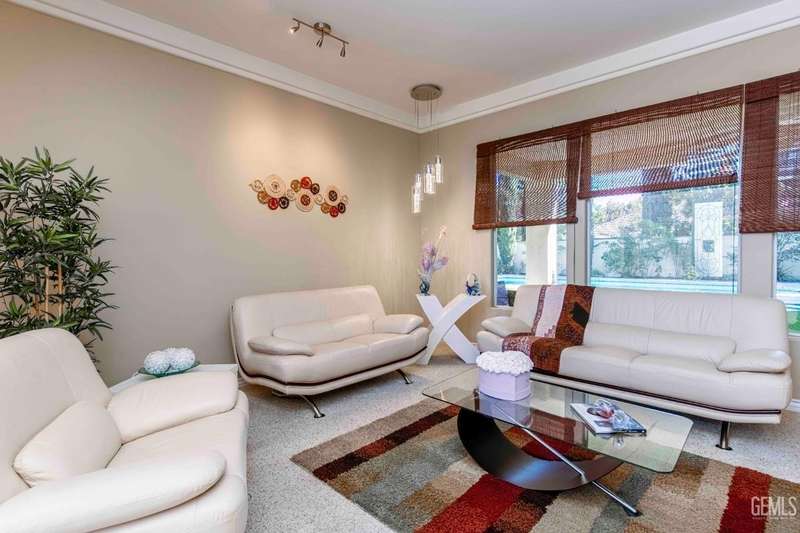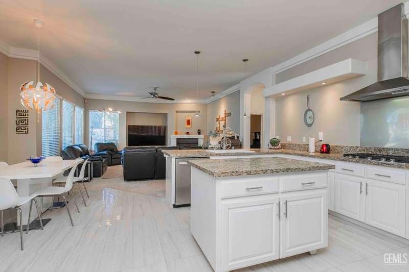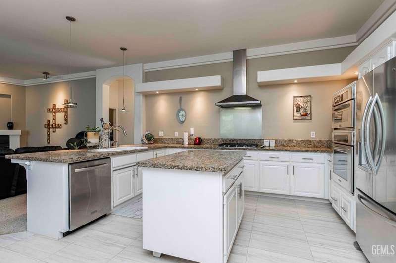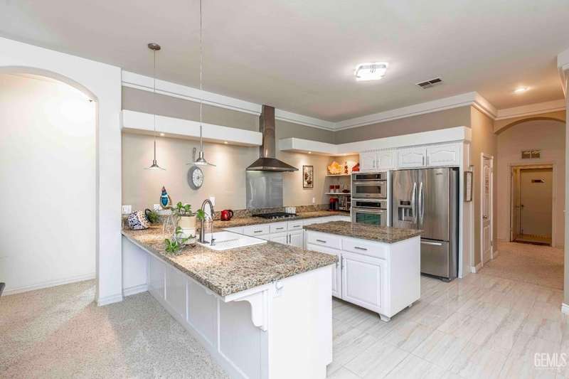 Stunning single-story residence with timeless curb appeal, set on a spacious lot with mature trees & landscaping. Inside, the unique layout offers 3 separate wings, showcasing a formal living room, dining area & a welcoming family room with fireplace and views of the backyard. The gourmet kitchen is designed for entertaining, featuring granite counters, stainless steel appliances, double ovens, gas cooktop & a large island with seating. 5 well-sized bedrooms include a serene primary suite with spa-inspired bath, dual vanities, soaking tub, walk-in shower & generous closet space. Additional highlights include updated bathrooms with custom tile, indoor laundry & abundant storage throughout. Step outside to your private backyard oasis with sparkling pool, covered patio & multiple lounge areas surrounded by greenery. A 3-car garage & extended driveway provide ample parking. Located in a desirable neighborhood, this home blends quality craftsmanship with everyday comfort and style.