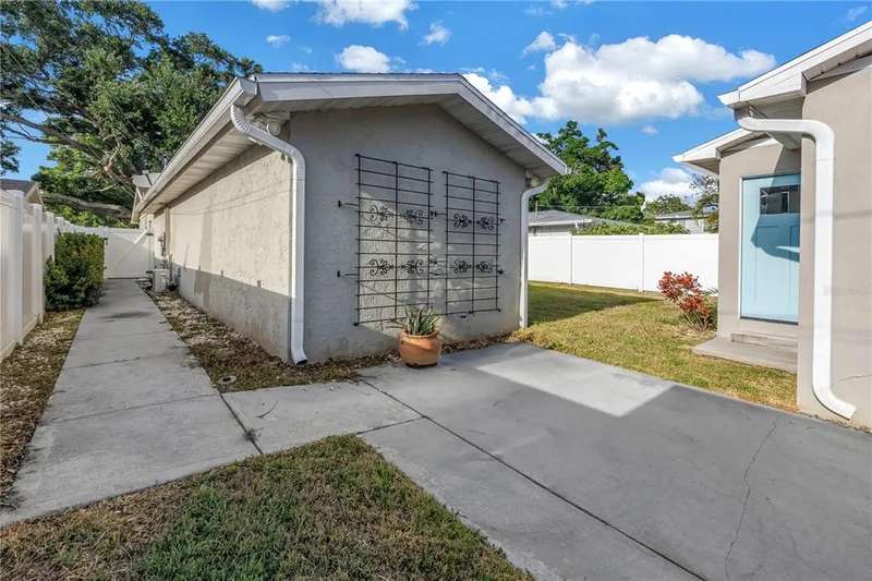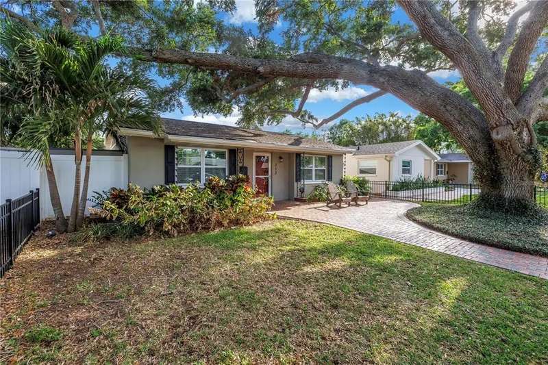Welcome to this beautifully updated home in the heart of St. Petersburg, located in a charming neighborhood in flood zone x! This charming property offers 1,466 sq ft of living space in the main home, featuring 3 spacious bedrooms and 2 bathrooms, plus an additional 397 sq ft detached studio accessory living space with a full bathroom. Perfect for guests, a home office, creative space, let your imagination go wild. As you enter the home, you are greeted by the inviting living room, seamlessly flowing into the open-concept kitchen and dining area. The entire home is adorned with beautiful wood-like tile flooring, offering a modern and cohesive feel. Towards the front of the home, youâ??ll find the two guest bedrooms and the guest bathroom, offering privacy and comfort in this split floor plan. The heart of the home lies in the kitchen, featuring stunning quartz countertops, shaker-style cabinetry, and a layout that makes both cooking and entertaining a breeze. Just off the kitchen, youâ??ll discover the laundry room, which not only offers additional storage space but also leads you into the cozy primary suite. The primary bedroom feels warm and inviting, offering the ideal retreat at the end of the day. The en suite bathroom boasts a dual vanity, a walk-in closet with built-in shelves for all your storage needs, and a tub-shower combo to unwind and relax. Moving outside, the backyard is a true gem, providing space for outdoor entertaining or enjoying the beautiful Florida weather. The detached studio accessory living unit provides flexibility and can be transformed into whatever suits your lifestyle. Whether it be a home office, art studio. With its full bathroom and high ceilings, itâ??s a perfect extension of the main home. Recent updates to the home include a new roof that was replaced in 2017 and HVAC system updated in 2015. In 2016, the kitchen and guest bathroom were beautifully renovated with modern finishes. The original garage was converted into the spacious primary bedroom suite, including an en suite bathroom, walk-in closet, and laundry room, with work completed in 2017/2018. Additionally, the home features ceramic tile flooring throughout and crown molding in the primary bedroom, enhancing its overall appeal. This home is ideally located just minutes to vibrant Downtown St Pete and right around the corner from I-275, offering easy access to the Gulf Beaches, South Tampa and Tampa International Airport. Donâ??t miss your chance to own this incredible property in St. Pete.