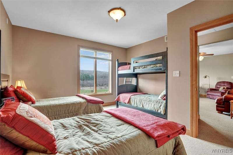 Experience the perfect blend of space, function, and setting in this custom-built contemporary hillside home with over 2,300 sq ft of living space on approximately 7.2 acres. A two-story, 28x36 heated garage/shop offers exceptional flexibility for vehicles, hobbies, or workspace needs, while the expansive blacktop driveway provides ample room for guests and extra parking. Step inside the welcoming foyer and discover an open, light-filled interior. The living room, with gas fireplace, flows into a spacious dining area and a beautifully designed kitchen complete with granite countertops, a center island with an eating area, a walk-in pantry, and included appliances. The main floor also features three comfortable bedrooms and a full bath. The lower level adds remarkable versatility with a family room, two full baths, another bedroom, two bonus rooms suited for storage or a variety of uses, plus a laundry/utility area with direct access to the backyard. From many rooms, take in sweeping views of the surrounding landscape. The property offers privacy, acreage, and the option for additional land (Up to 308 acres) if desired?enjoy peaceful country living! ( Taxes are based on entire property including 315 acres. Taxes will be reassessed if purchased with less acreage.
