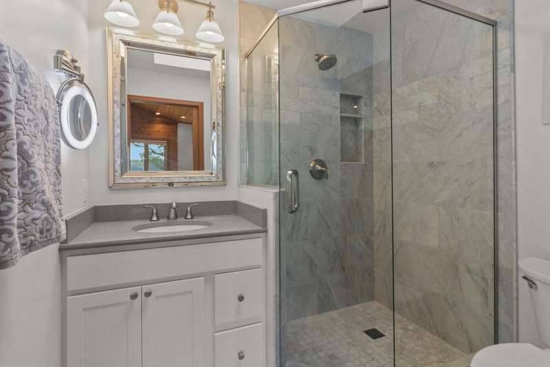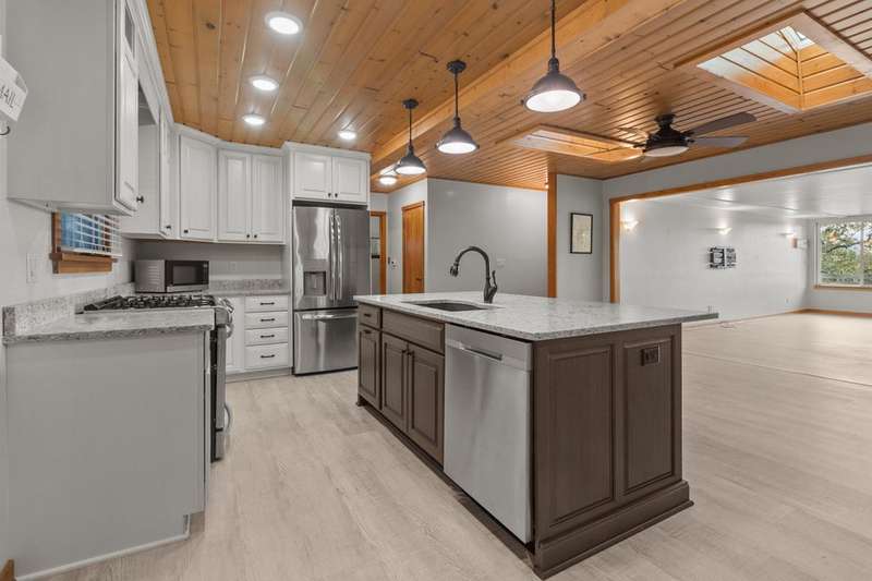 Escape to this charming 2-bedroom, 2-bath bungalow perched above Middle Lake with 50 feet of frontage. Surrounded by trees and tucked into the hillside, it's the perfect weekend retreat overlooking beautiful Lauderdale Lakes. Wake up to peaceful water views, enjoy coffee on the spacious deck, and unwind as the sun sets over the lake. Inside, you'll find an updated kitchen, new flooring, and refreshed bathrooms that blend comfort with cottage character. The vaulted cedar ceilings in the primary bedroom and its ensuite bath add warmth and charm. A dry boathouse with private pier completes this relaxing lakeside getaway. See documents for a list of recent updates