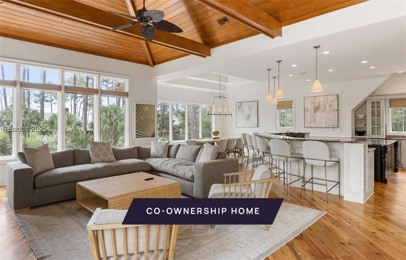 Own one-eighth of a professionally managed, turnkey home. Perfect for large groups, 2nd row ocean home meticulously renovated, featuring elegant gathering spaces inside and out. Main-floor sitting area features a tray ceiling and wet bar, opening to patio, pool & sun porch. Upstairs, under a soaring wood ceiling, spacious great room has fireplace, generous dining space gorgeous chef's kitchen with stainless appliances two islands. Relaxing primary suite has a curved balcony overlooking pool en suite bathroom with tiled shower & dual vanities. Home comes fully furnished and professionally managed.