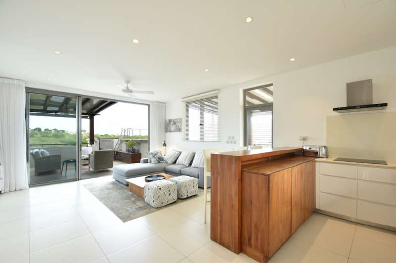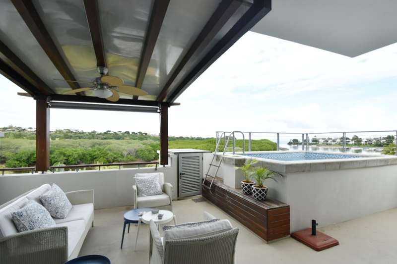 Situated in the only residential Marina in Mauritius, this furnished penthouse makes the ideal lock-up-and-go for anyone looking to settle in a residential estate with access to the marina and sea. The open-plan kitchen and living area leads you to a vast terrace that incites you to unwind in a cosy sitting area, dine at a spacious dining area with Bbq webber or cool off in the private plunge pool, overlooking the river opening into the sea. The penthouse has 2 inviting bedrooms equipped with cupboard space and air-conditioning. The generous master bedroom offers a splendid river and mountain view, comprising a lovely en-suite bathroom with bathtub and shower. The luminous second bedroom makes the perfect guest room with its own shower room. Offering an incredible lifestyle, this property allows residents to have easy access to the Black River lagoon and enjoy the marina’s membership club: sports center with gym, lap pool and tennis court, spa and boat services.