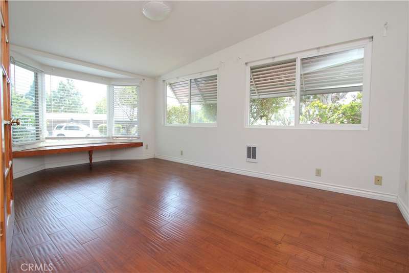 Beautifully Expanded Corner Unit with Golf Course Views in Leisure World - 2 Bedrooms, 1 3/4 Baths. Don't miss this rare opportunity to own a fully expanded corner unit offering exceptional drive-up convenience and an array of desirable upgrades. This spacious 2-bedroom, 1 3/4-bath home is designed for comfort and style, with thoughtful touches throughout. Step inside to discover beautiful hardwood floors that run seamlessly throughout the home, adding warmth and elegance. The bright and airy living spaces are enhanced by a large bay window with built-in cabinetry, allowing for both storage and natural light. The windows have been upgraded and the updated kitchen features an island, stainless steel sinks, and plenty of workspace--perfect for cooking and entertaining. This home is filled with natural light, thanks to two skylights and smooth ceilings that add a clean, modern feel. The double-door entry offers a grand welcome, while the heat pump ensures year-round comfort. A cozy family room opens to picturesque golf course views, with a south-facing orientation that fills the space with sunshine and showcases tranquil greenbelt surroundings--ideal for relaxing or enjoying a morning coffee. Additional features include: Close assigned parking in Building 7, Space 10. Leisure World is a vibrant 55+ senior community thats Just 1.5 miles from the Pacific Ocean with Resort-style amenities including a Par 3 golf course, swimming pool, and six clubhouses with countless activities, clubs, and social events. Whether you're seeking a peaceful full-time residence or a seasonal retreat, this beautifully expanded home offers the best of coastal senior living.