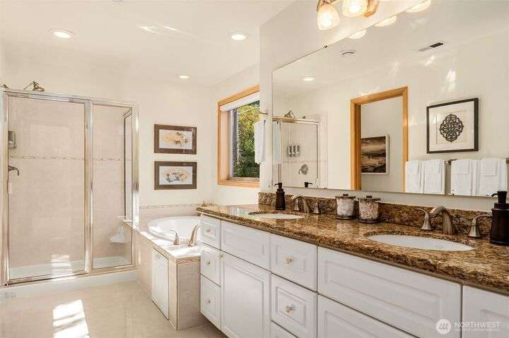 You know that feeling when a house just fits? This is it. Four bedrooms (yes, all upstairs!), sunshine pouring through windows galore (go ahead, count ’em!), and high ceilings that make everything feel open and airy. Cook big in the well-organized kitchen with double ovens and island seating, host a fabulous dinner in the spacious dining room, or curl up fireside – on either side of the two-sided fireplace. Outside? The deck is plumbed for your gas grill, the roomy patio is wired for game-day TV, and the yard has a play structure ready to roll. Solar panels, AC, soaking tub with a view… this home’s got heart, smarts, and serious style. Just blocks to Seward Park, Columbia City, Hillman City, and light rail. Quick hop to SeaTac airport, too!