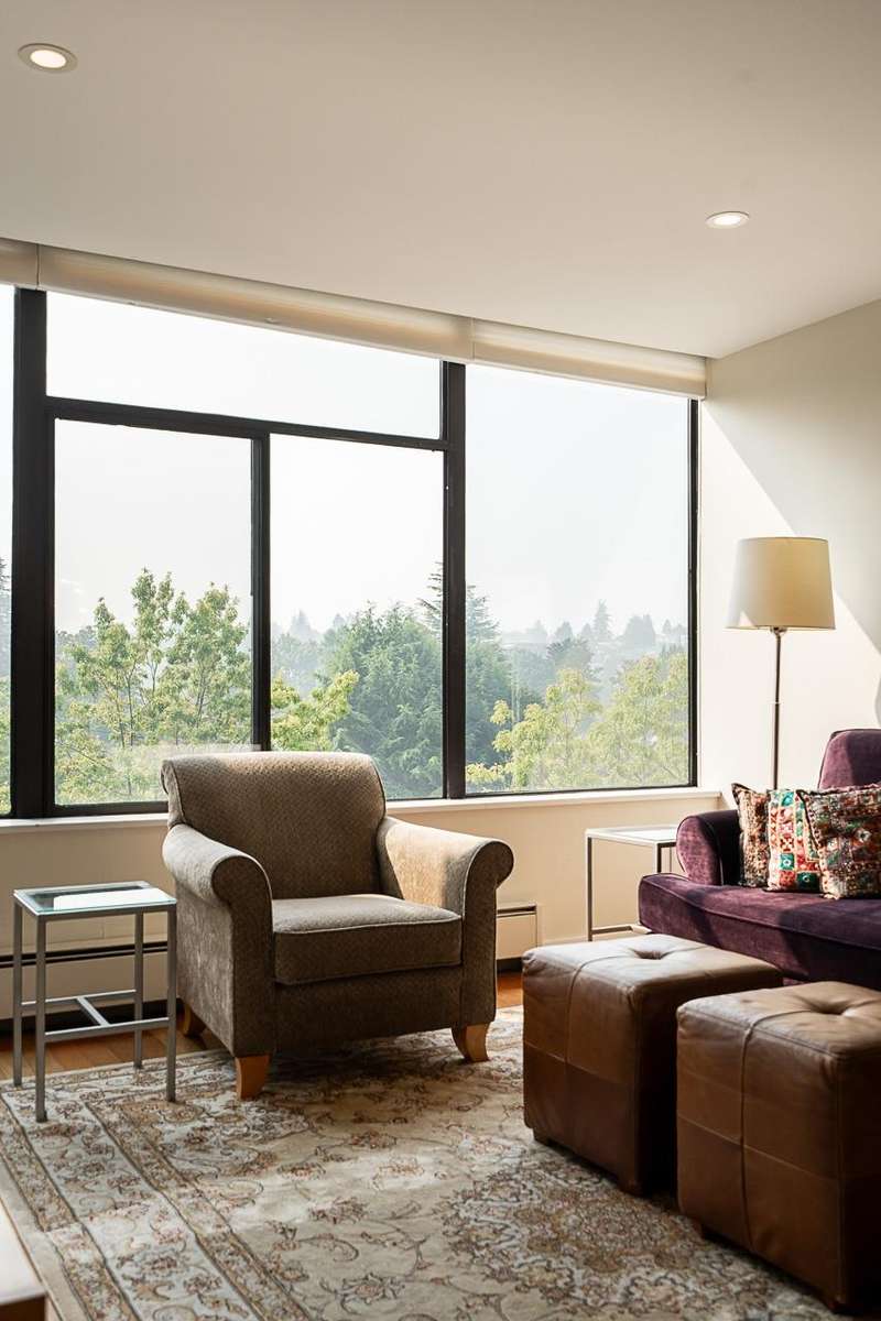 Welcome to Arbutus Village. This tranquil, concrete complex sits among treelined paths & offers the best in West Side location, convenience & lifestyle. Our south facing, oversized 1 bedroom sub-penthouse features abundant natural light & a soothing color palette. Upgrades include new kitchen & LED lighting (2015), all new windows (2021), bathroom reno & engineered wood floors. A custom geometric shelving unit separates the large bedroom from the sunny office/den space & a generous dining area allows for easy entertaining. Insuite laundry, 1 parking, 1 storage + an outdoor pool complete the amenities. 5 mins walk to Safeway, BC Liquor w/more amenities on the way as the neighboring Arbutus Shopping District & Plaza quickly nears completion. Sorry, no pets or short term rentals allowed.